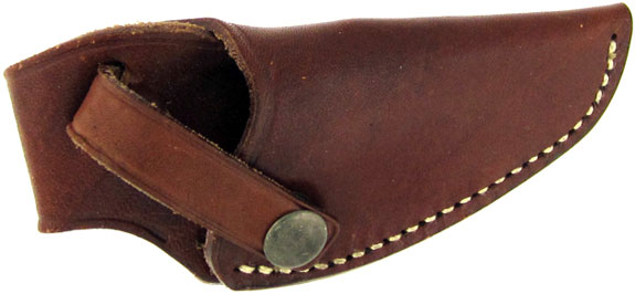 Polished stainless steel handle shaped like a gun with rosewood onlays. Polished stainless steel blade. The handle is stamped KERSHAW - 22 CAL JAPAN. Stainless steel pins and screws. Very cool Kershaw lock back knife. Very hard to come by. Near mint condition includes quality custom leather sheath.