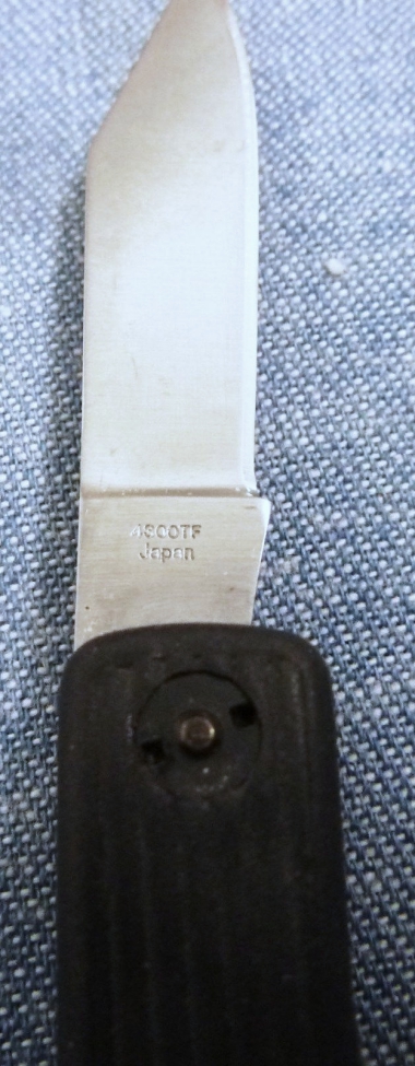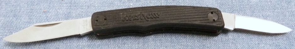 These knives have been issued in honor of Delley Wade Officer, a legendary game warden who died in a tragic hunting accident. Some of the proceeds from these handy little knives go to Delley's family. Non-slip co-polymer handle is ergonomically designed for comfort. This model has clip point blade and a smaller spear point pen blade and are hand honed to a shaving sharp edge. Lightly used but does not appear to have been sharpened, no box.