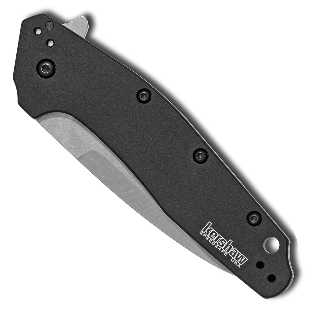 This special model features black anodized aluminum handle scales. Stonewash finished Bohler M390 stainless steel drop point blade. Black finished hardware and pocket clip. Marked with the model information and Kershaw logos. This is a superb buy and one of the most affordable knives to offer M390 steel. Brand new in box.