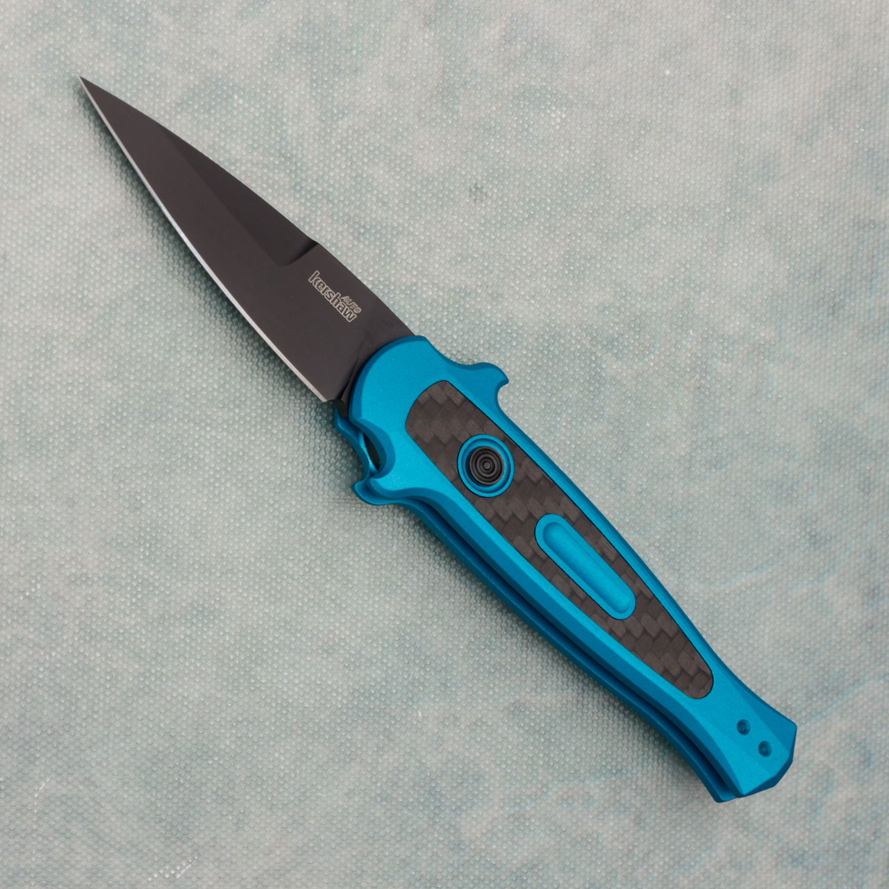 Kershaw Launch 12 Auto Diskin Design Teal Handle w/ Carbon Fiber Inlay Black Blade 7125TEALBLK