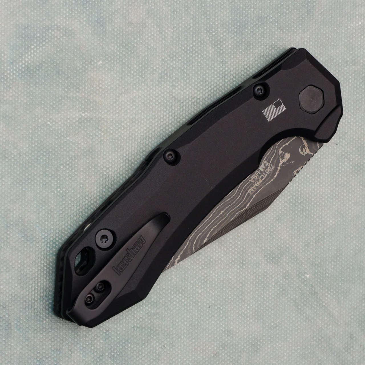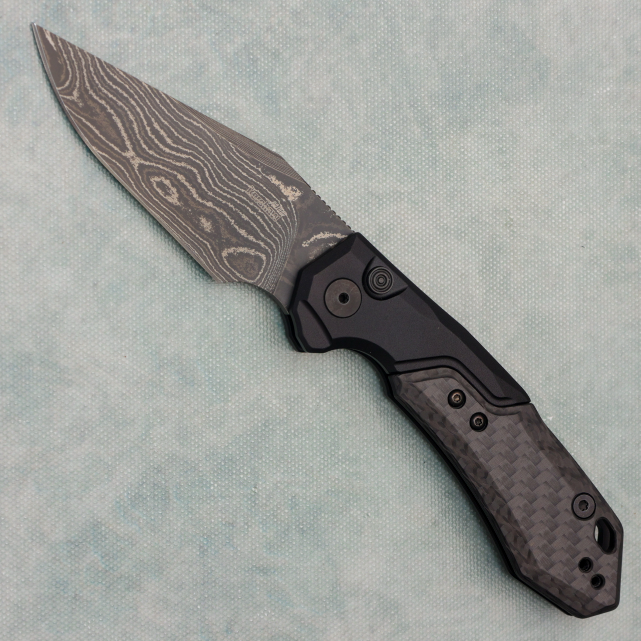 Kershaw Launch 19 Auto Black Aluminum Handle With Carbon Fiber Scale Black Damascus Blade 7851CFDAM