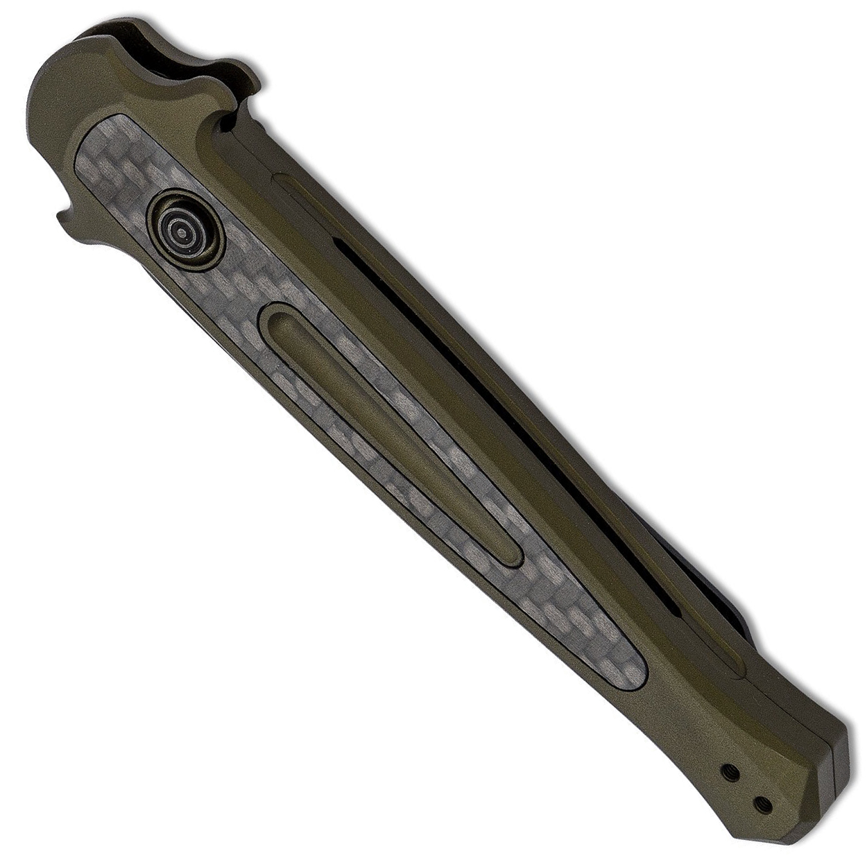 Kershaw Launch 8 Auto Diskin Design Olive Green Handle w/ Carbon Fiber Inlays Black Blade 7150OLBLK