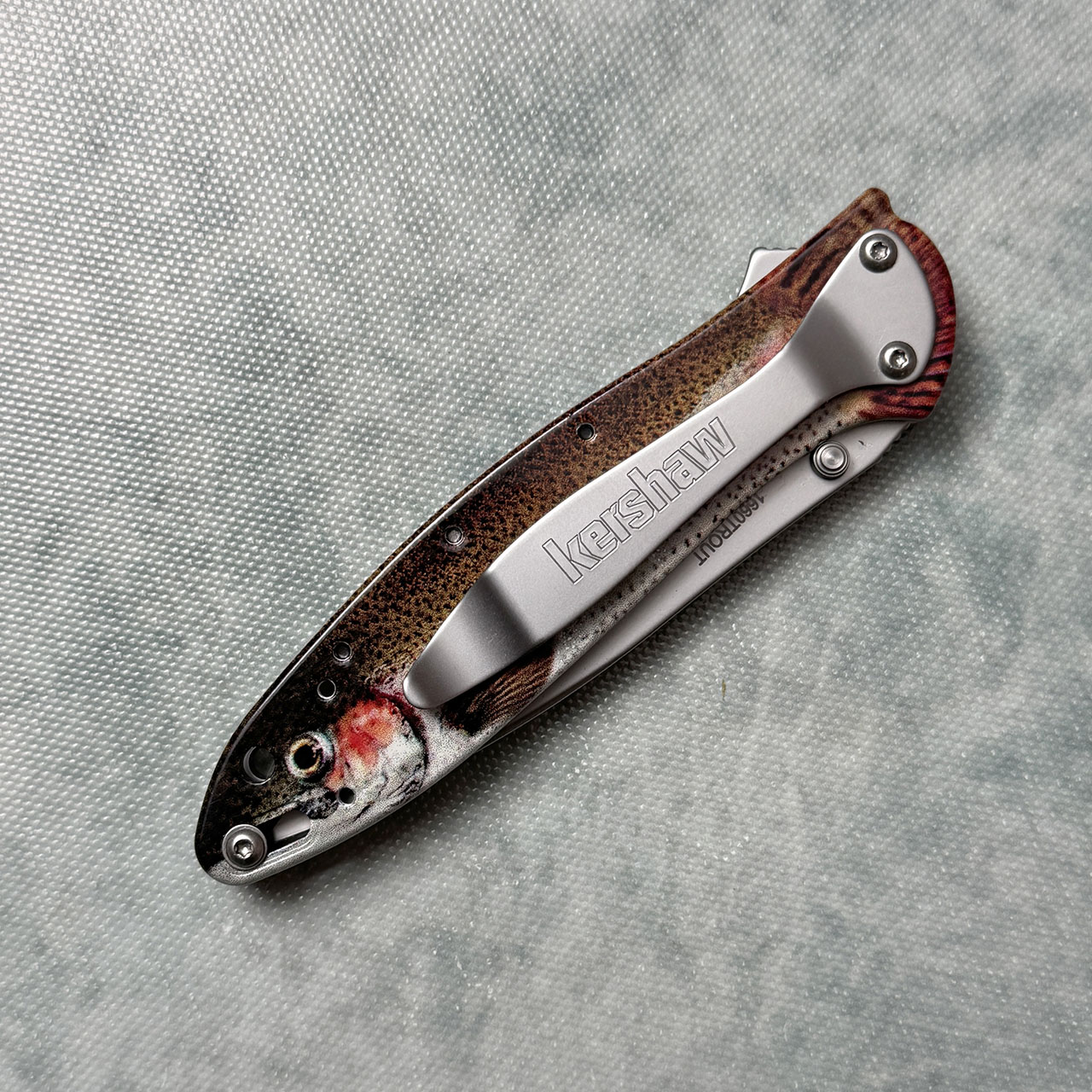 Kershaw Leek Assisted Liner Lock Rainbow Trout Aluminum Handle Bead Blast 14C28N Blade 1660TROUT