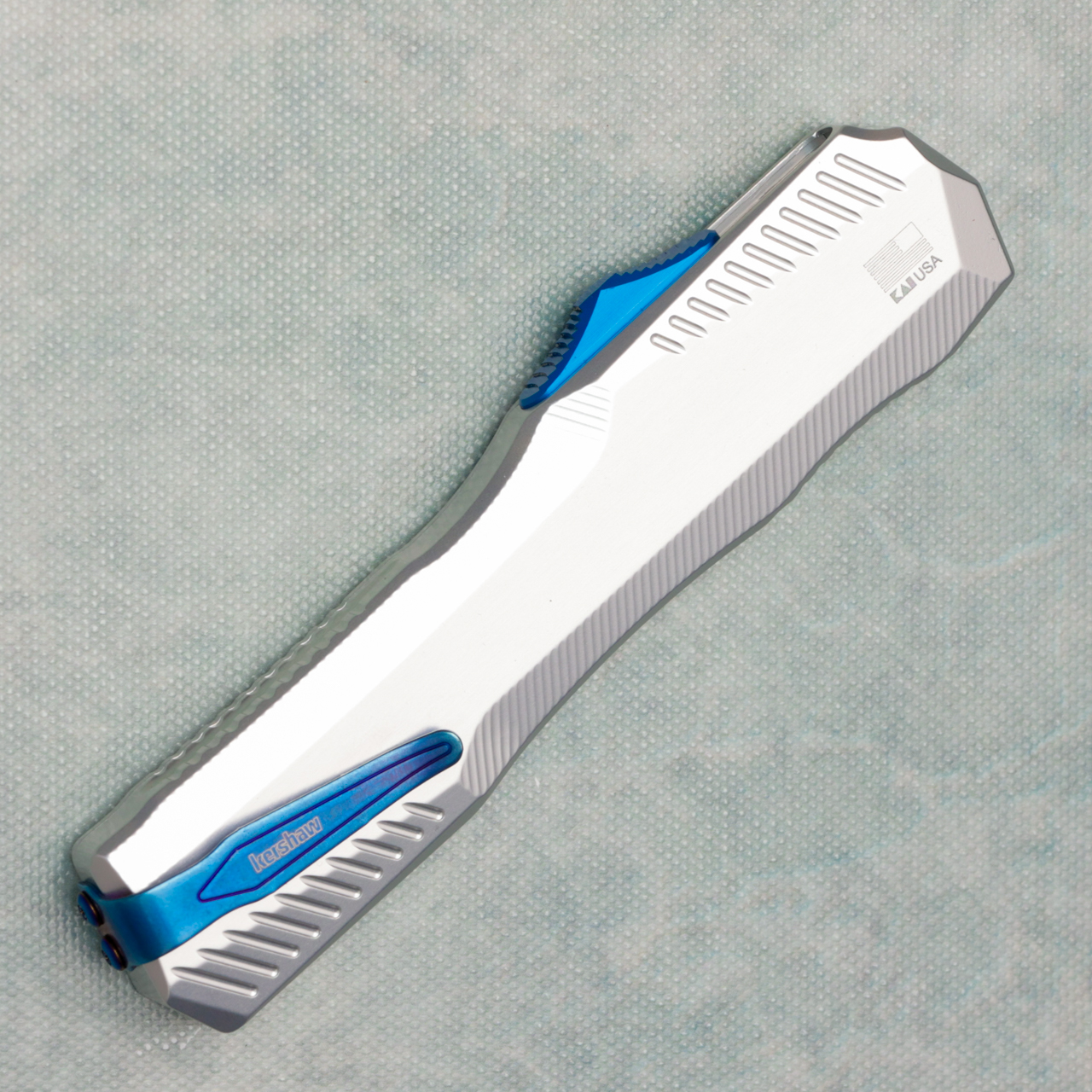 Kershaw Livewire Automatic Raw Aluminum Handle Blue Magnacut Blade 9000RAWBLU