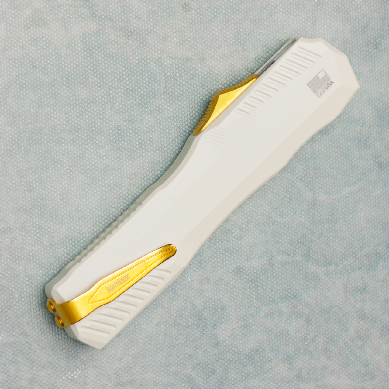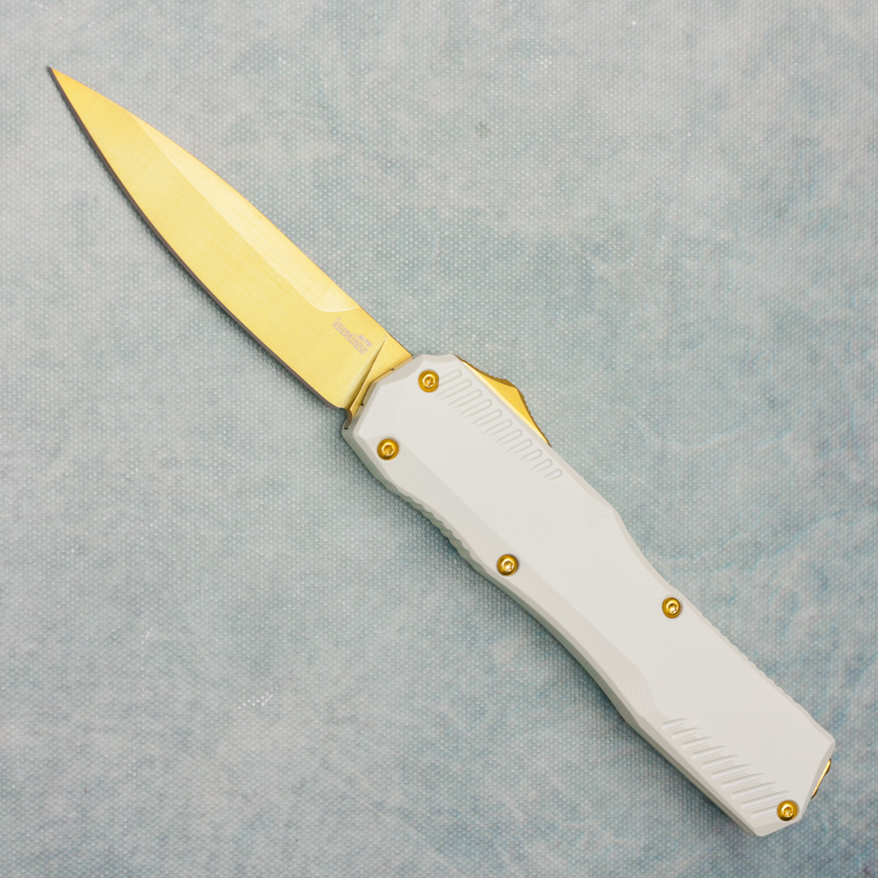 Kershaw Livewire Automatic White Cerakote Aluminum Handle Gold Magnacut Blade 9000WGLD