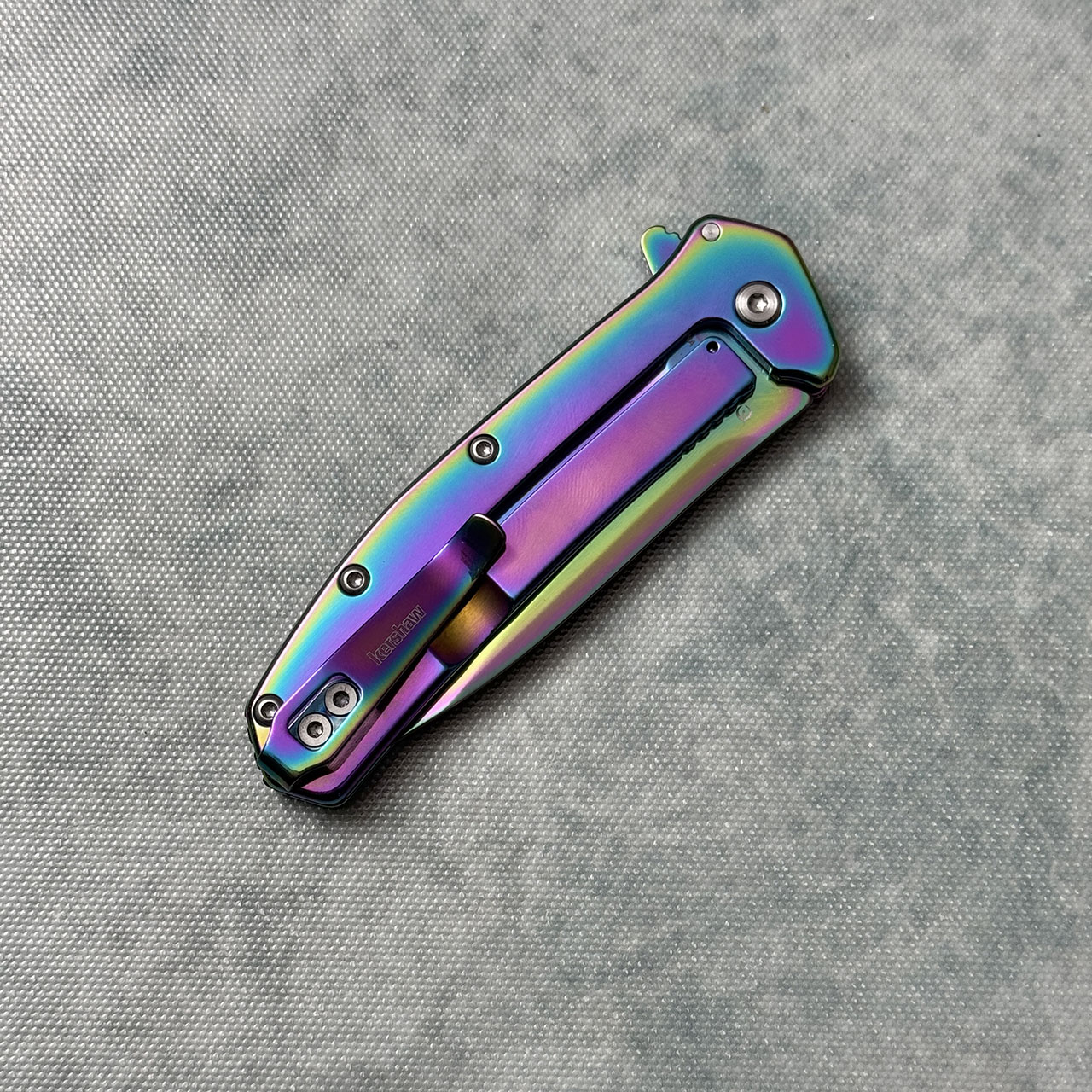 Kershaw Outcome Assisted Frame Lock Rainbow PVD Stainless Steel Handle Rainbow PVD Blade 2044RBW