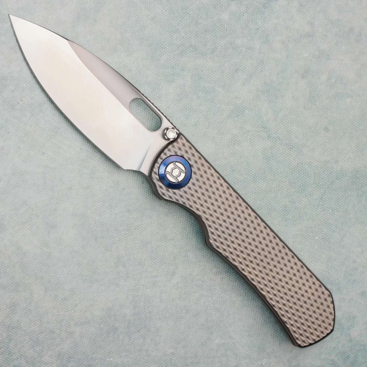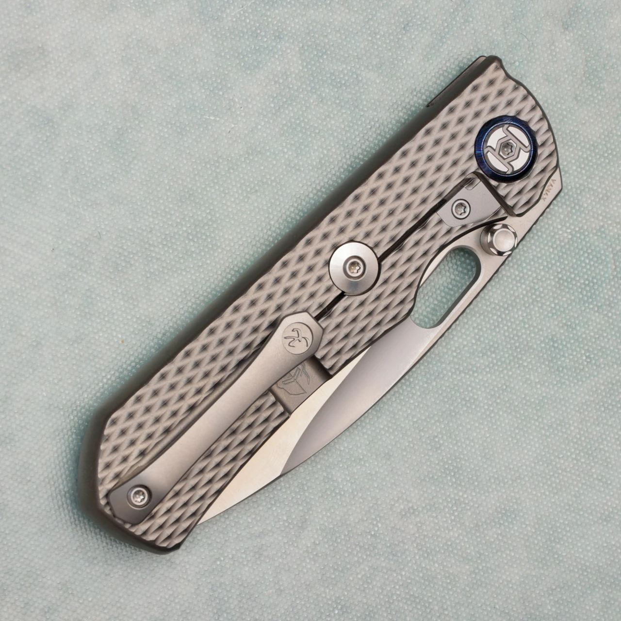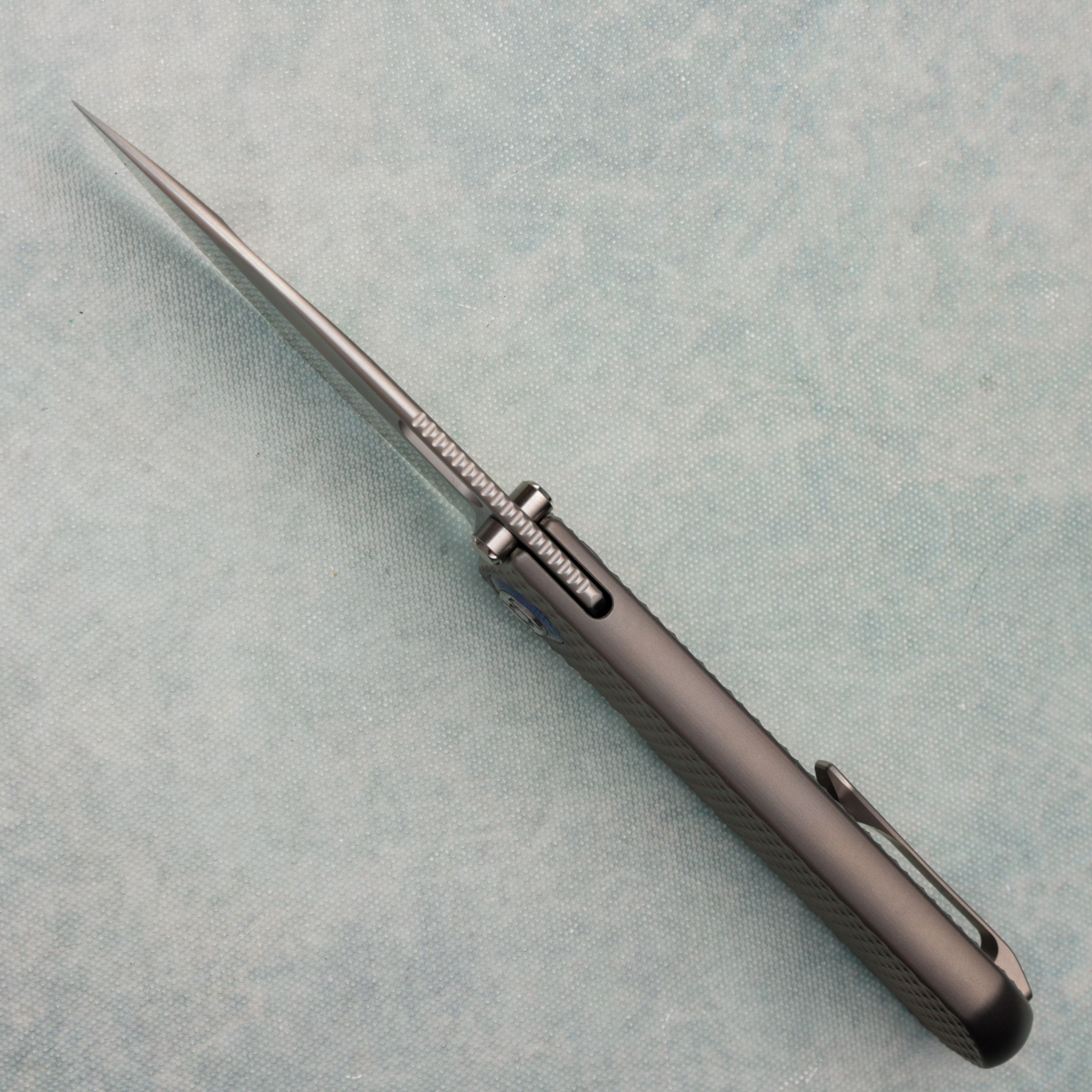 Kunwu & Metal Complex Excalibur Frame Lock Integral Textured Titanium Handle Satin Vanax Blade