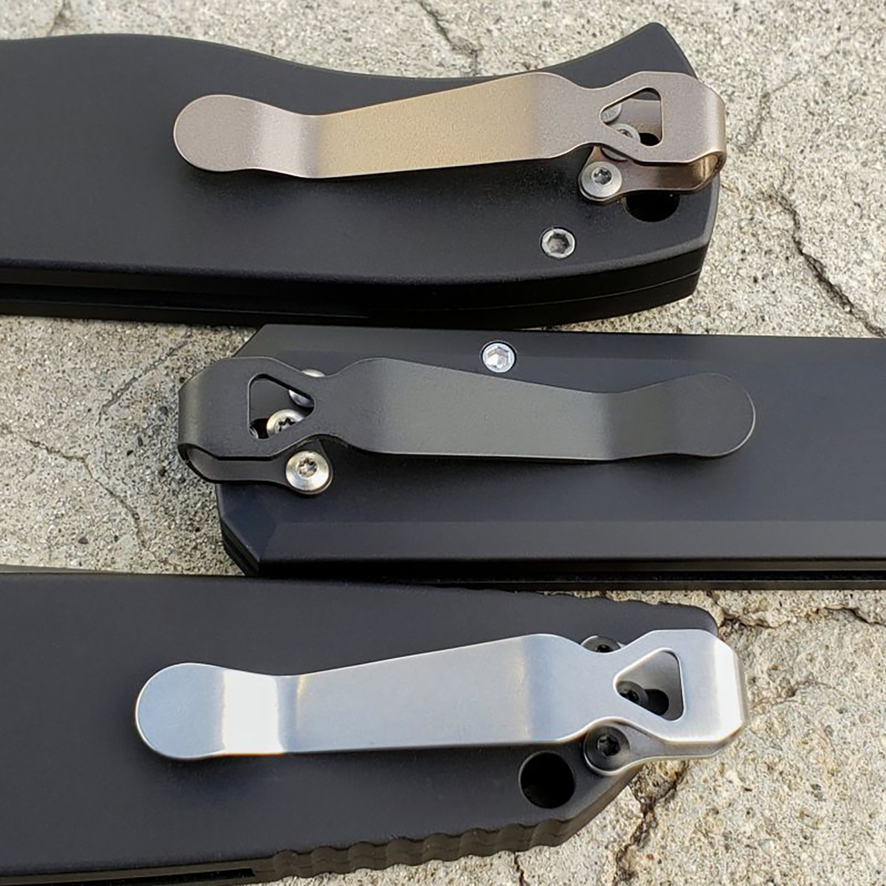 These standard clips from Lynch will fit most Emersons, as well as some of Benchmade’s most common models, including the Griptillian and Mini-Grip series, the Bugout, and the 940 series, among others. This design also works with several ProTech and ZT knives. See the full list below. They are made in Washington state from domestic 6AL-4V titanium, and are hand-formed and finished. Each clip carries a lifetime guarantee - if you bend or tweak it, Lynch will replace it, no charge.