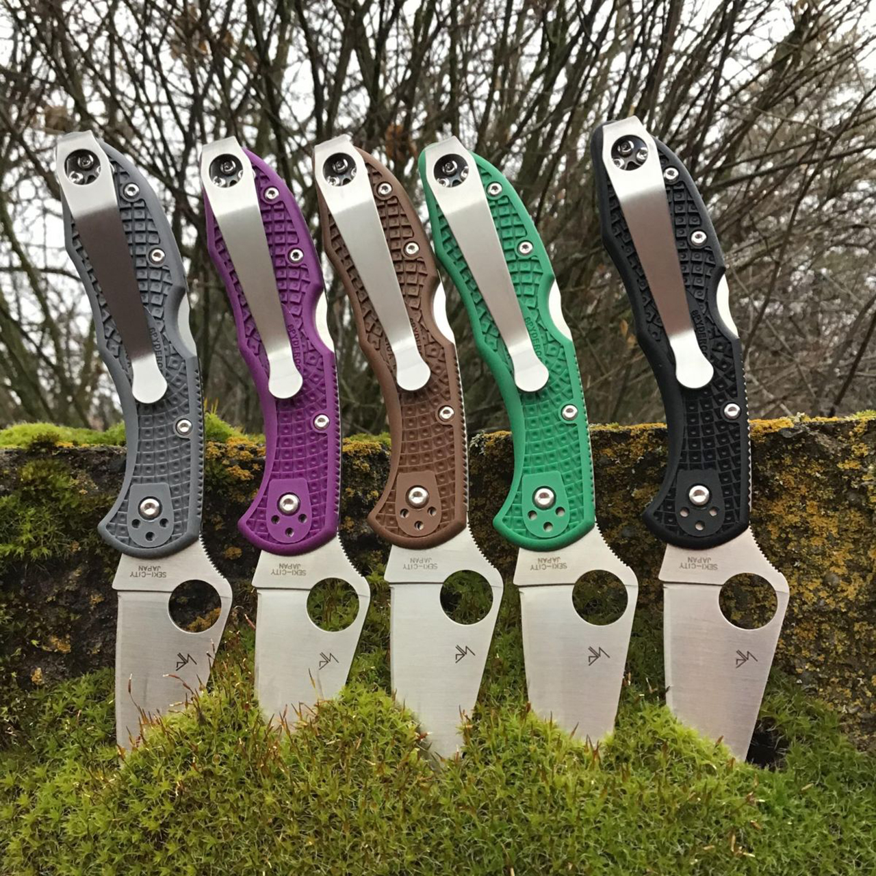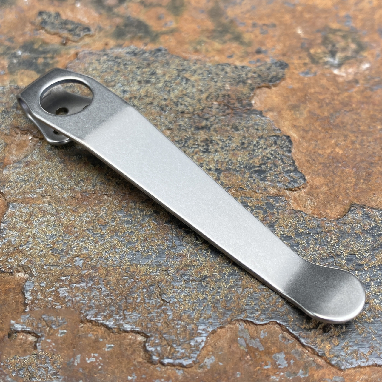 We suggest the Spyderco Long clip for many FRN-scaled Spyderco blades that share the same clip hole pattern (Endura, Endela, Delica, Stretch, Domino, etc). This is due to pinch point location - the long clips pinch in the same location as the OEM Spyderco clips (the smooth part of the FRN scales, and the lock bar on the Domino). The Long clip will also fit many, if not most, knives that the Spyderco Standard clip fits, due to the shared hole pattern. See the full list below. They are made in Washington state from domestic 6AL-4V titanium, and are hand-formed and finished. Each clip carries a lifetime guarantee - if you bend or tweak it, Lynch will replace it, no charge.