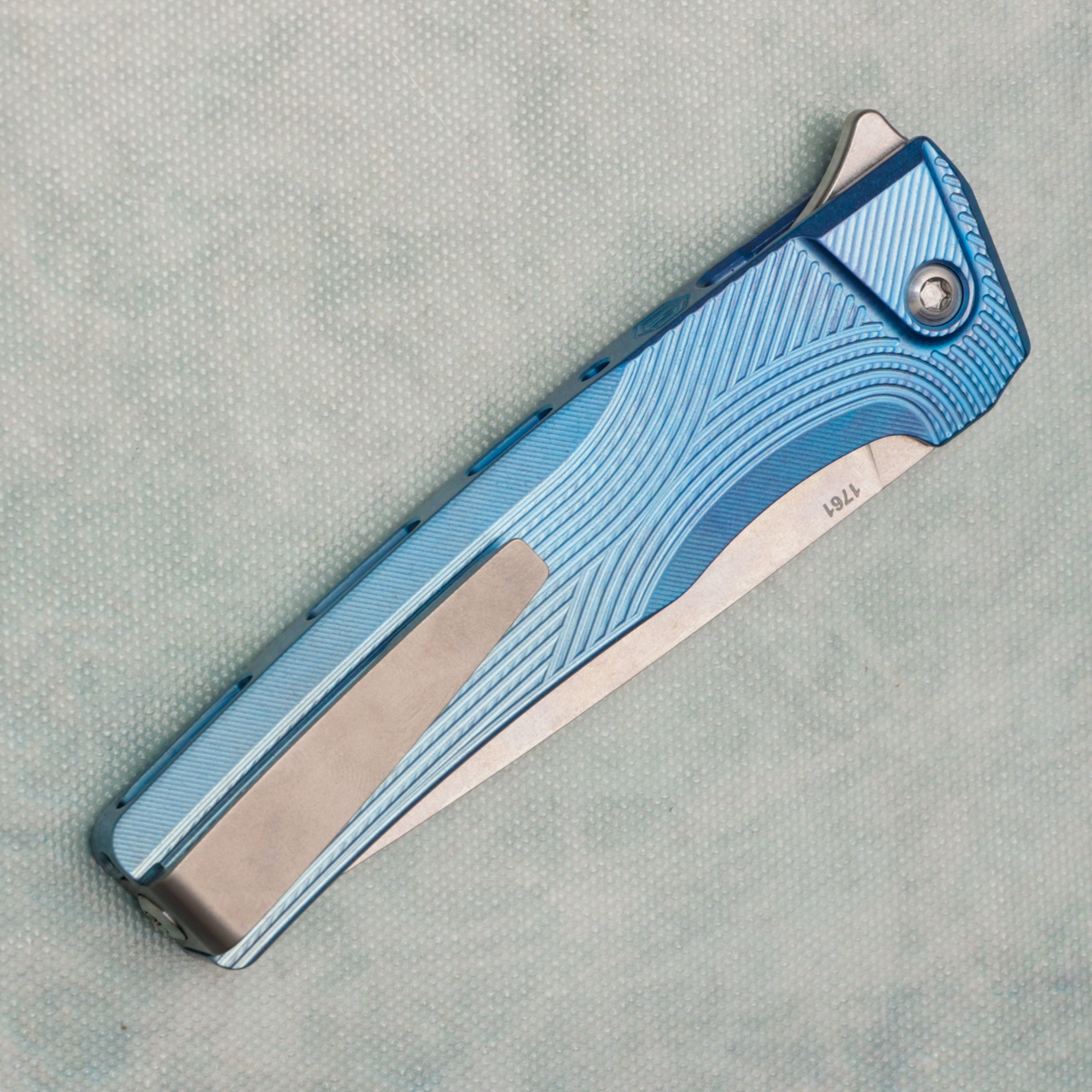 This model features a ice blue fade anodized titanium integral handle with streamline texture, and zirblast titanium bolster and clip. Stonewash finished CPM-S90V stainless steel drop point blade. Brand new in hardcase with qc card, bolster coin, and bit.