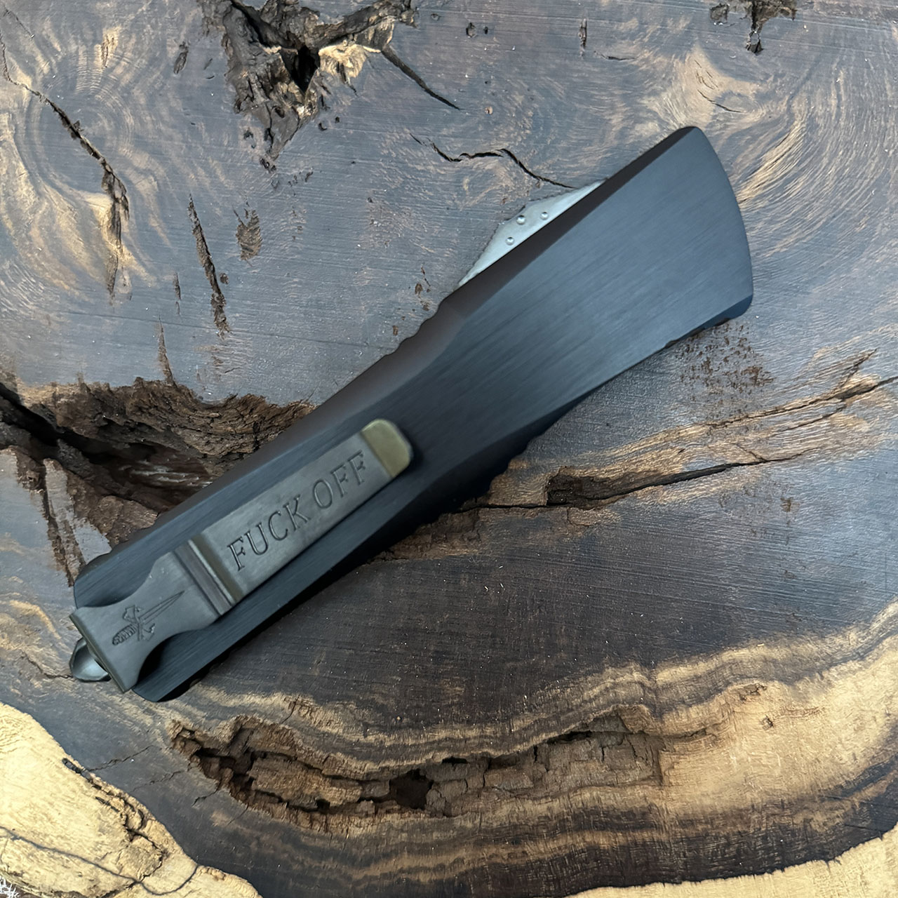 Marfione Custom Combat Troodon D/E Hefted Black Alloy Handle w/ Dagger Relief DLC Satin Finished Blade DLC Ringed Hardware F*CK OFF Pocket Clip (Pre-Owned)
