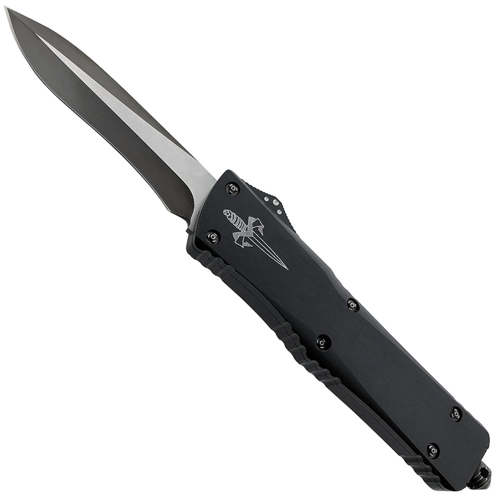 This custom model features a black anodized 6061-T6 hefted aluminum handle featuring a nice big Marfione Dagger logo. Two tone DLC hand rubbed satin finished hand ground ELMAX stainless steel recurve blade. Two tone ringed DLC hardware and glass breaker with lanyard hole. Black pocket clip has the Marfione Dagger logo, model information, and date of birth. Brand new in box with certificate plate and all original accessories.