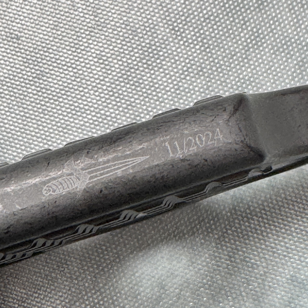 The Marfione Custom Hand Tank four finger knuckle spiked paperweight is one badass desk accessory! This model features frag milling on the flats and is made out of DLC apocalyptic finished titanium. Brand new in box with drawstring carry bag.