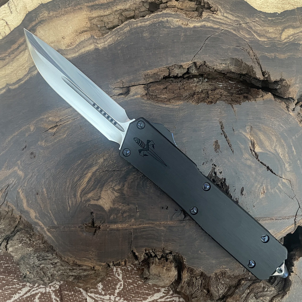 The Scarab is back in this new bigger and beefier model, the Scarab II. Improvements include a bigger overall size, wider chassis, and wider button. A flow through design with relief cuts in the blade and the butt end of the handle to improve reliability and allow under water firing. Standard torx hardware for easier maintenance. A perfect blend of each unique Microtech knife packed into a reliable and robust double action OTF package!