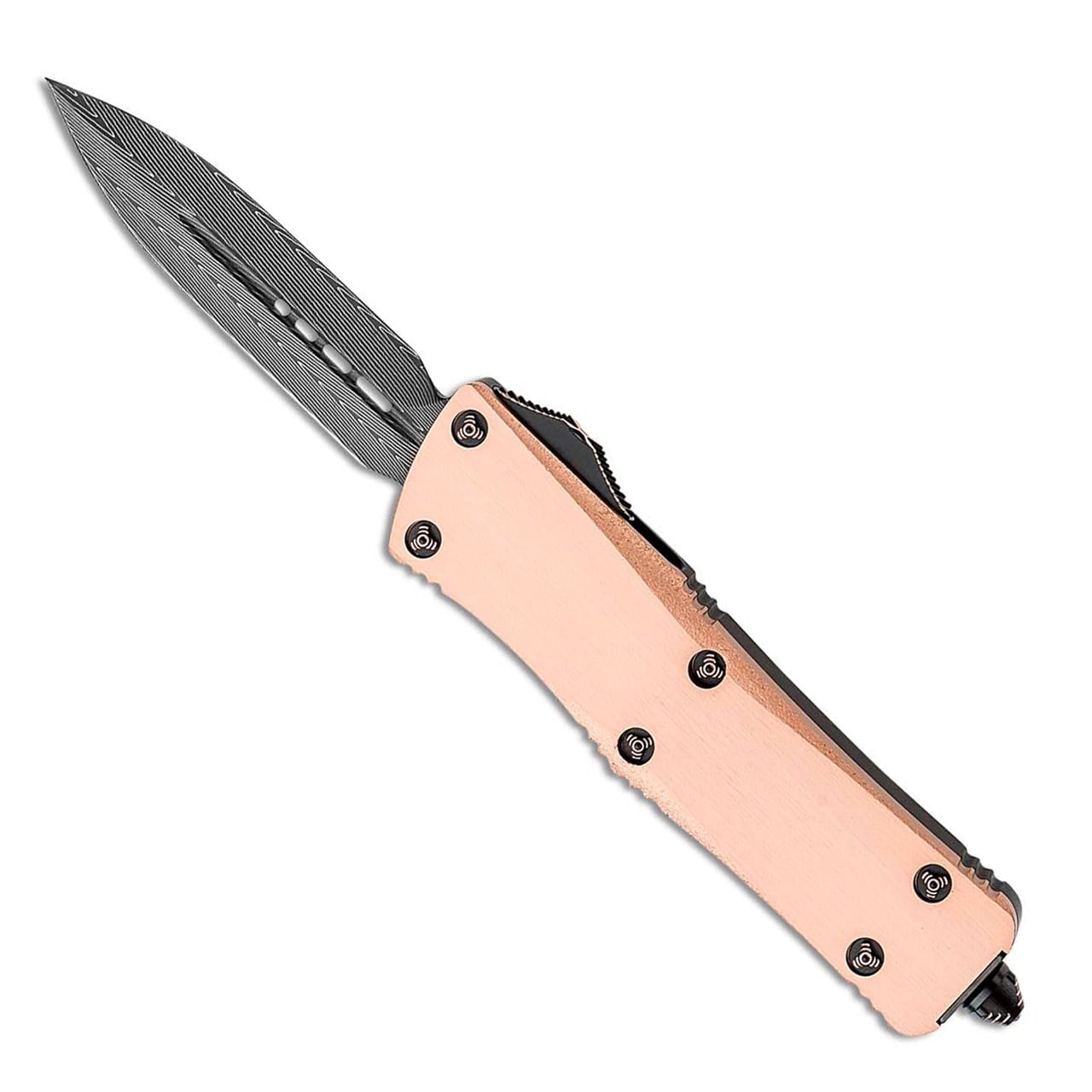 Marfione Custom Troodon D/E Satin Finished Copper Top w/ Stippled Edges Herringbone Damascus Blade Copper Ringed Hardware
