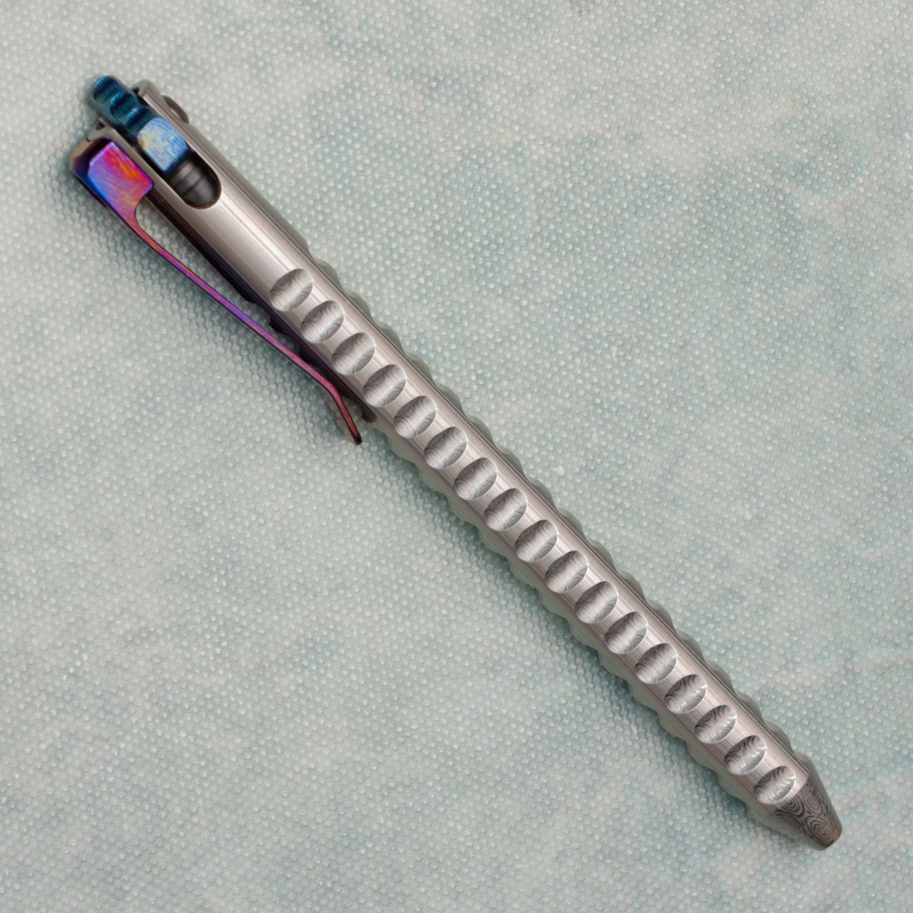 Milled Damasteel body with timascus flipper and clip, unlike other pens on the market this pen comes with the ability to use your favorite refills. With this kit are 2 length adapters, 3 springs, and 3 popular refills.