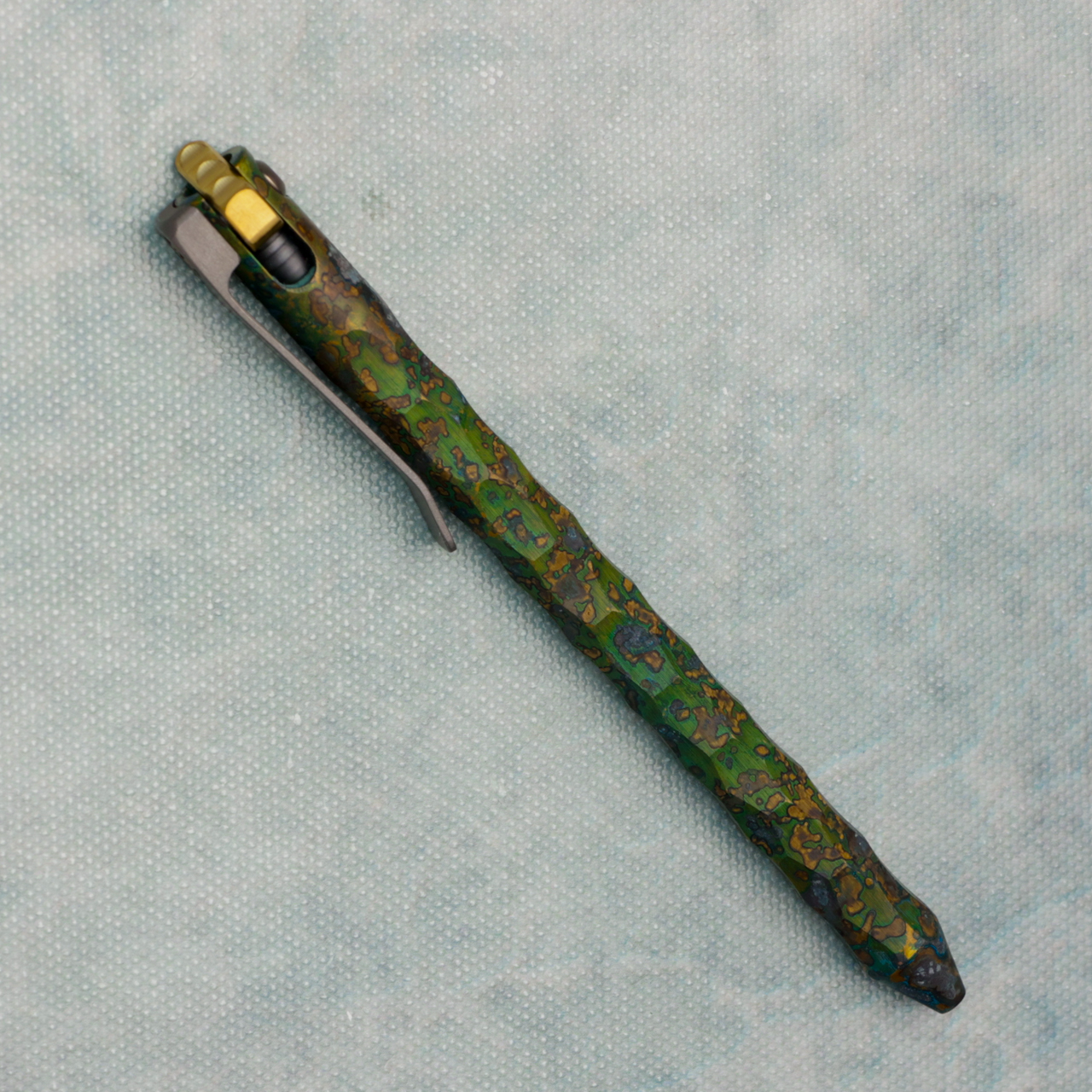 Sculpted shipwreck brass body with brass flipper and titanium clip, unlike other pens on the market this pen comes with the ability to use your favorite refills. With this kit are 2 length adapters, 3 springs, and 3 popular refills.