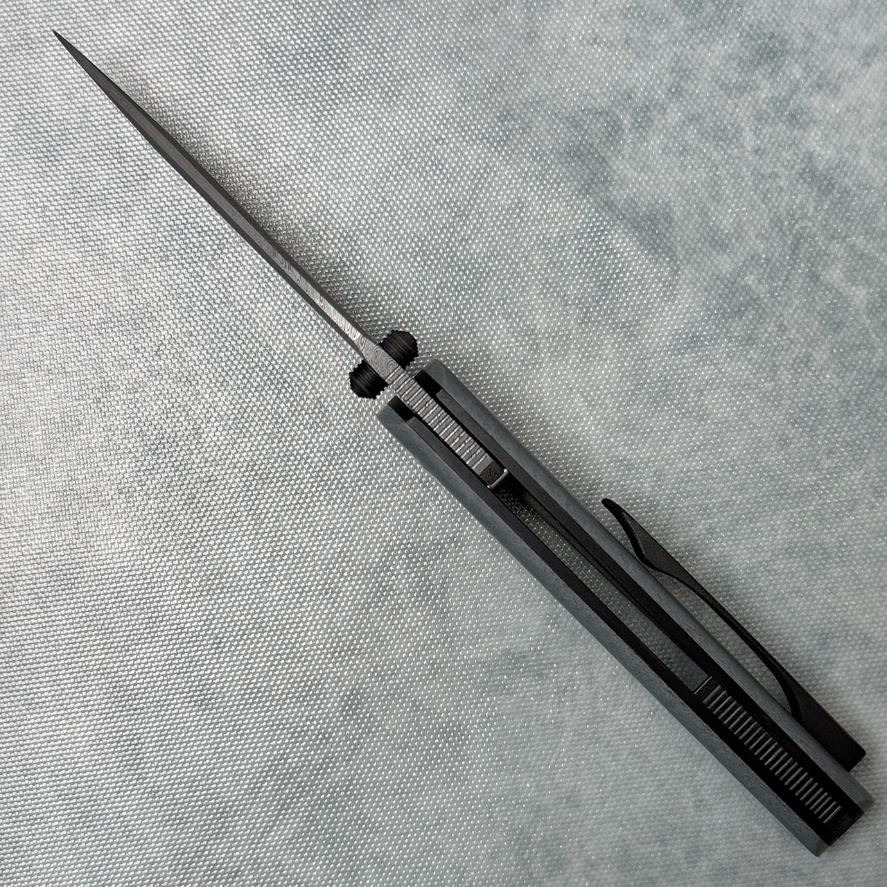 McCoy Bladeworks custom Disciple is one sweet knife. The tanto damasteel blade is not only beautiful, but also great for slicing and piercing tasks, the ergos are amazing, and the action is also very nice.