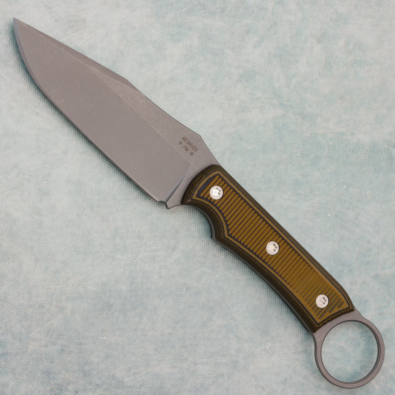 McNees Knives Agent Ringed Fixed Blade Atomic Yellow G10 Handle Stonewashed Blade
