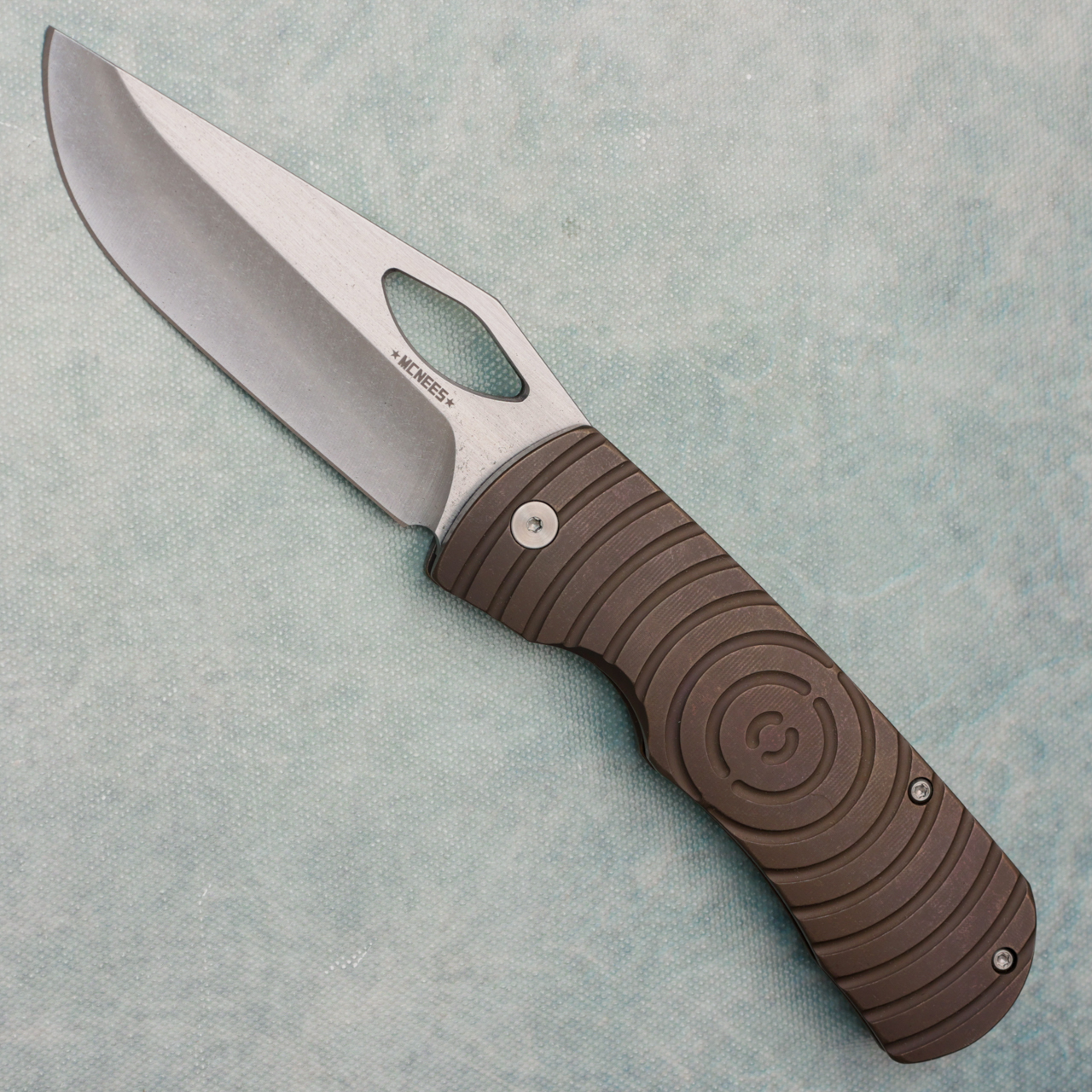 McNees Knives Dixon Frame Lock Bronze Shockwave Titanium Handle Satin Stonewash Magnacut Blade Satin Hardware