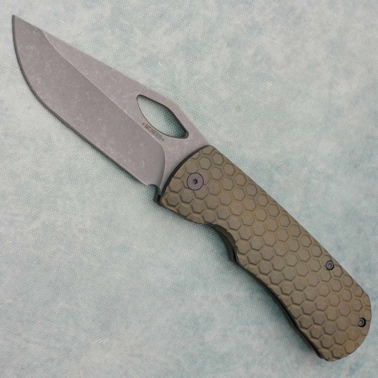 McNees Knives Dixon Frame Lock Honeycomb Green/Bronze Titanium Handle Matte Stonewash Magnacut Blade