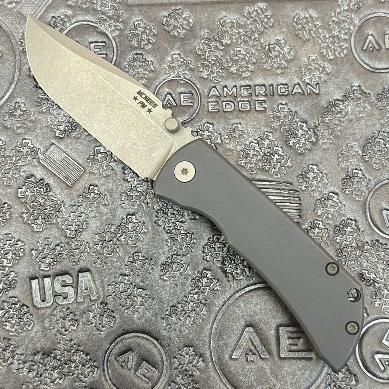 McNees Knives PM MAC 2 3 Gen 2 Atomic Blue Bronze Titanium Handle Stonewash Magnacut Blade