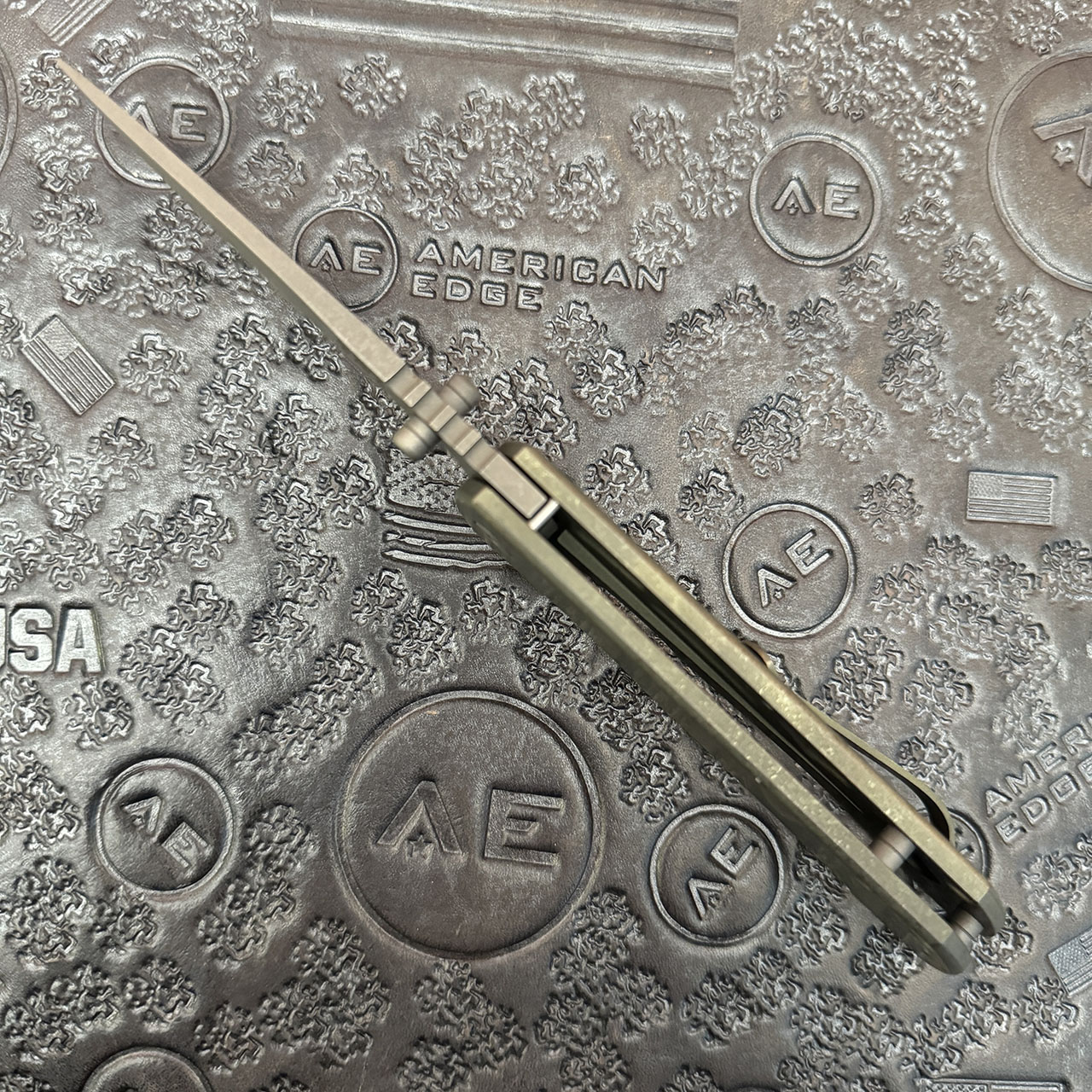 This model features a smooth titanium handle with an atomic green finish. Matte stonewash finished CPM-Magnacut stainless steel clip point blade. Stainless steel hardware. Matching anodized titanium pocket clip. Brand new in box.