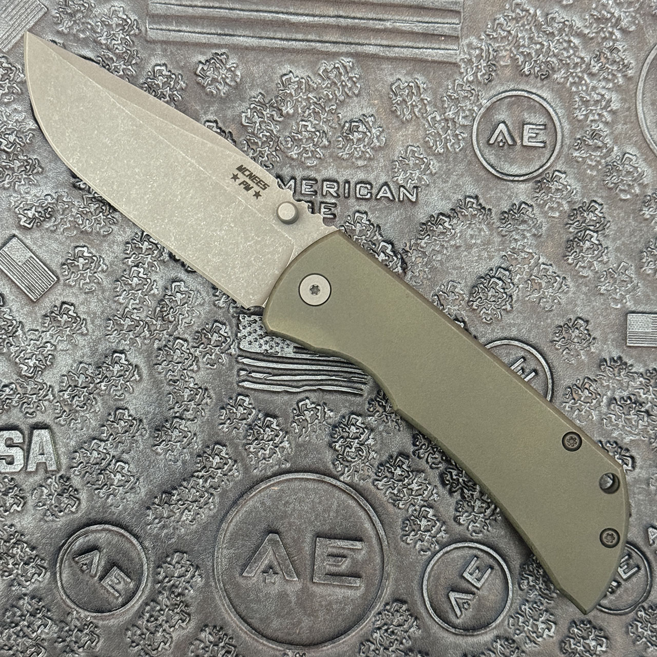 McNees Knives PM MAC 2 3 Gen 2 Atomic Green Titanium Handle Stonewash Magnacut Blade