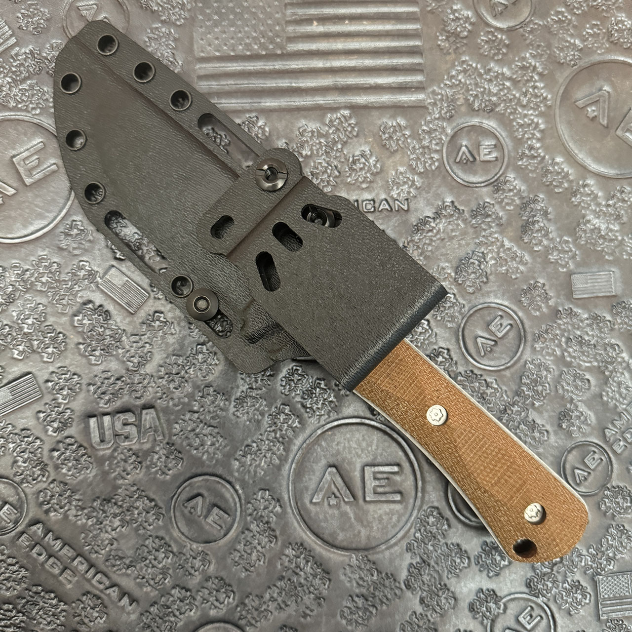 This model features a milled atomic coyote micarta handle. Matte stonewash finish CPM-3V drop point blade. Comes with kydex sheath. Brand new in box.