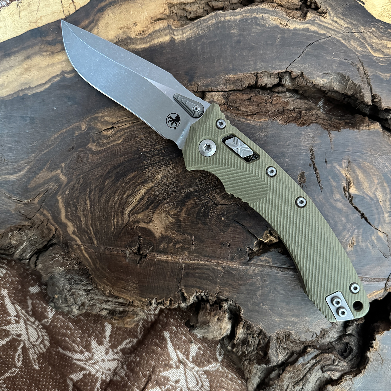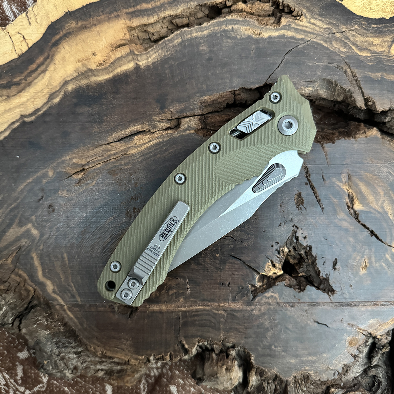 This model features fluted OD Green G-10 handle scales. Apocalyptic finished M390MK stainless steel clip point blade. Apocalyptic finished hardware. Pocket clip features the Microtech logo, model information, serial number, and production date. Blade features the steel information and Microtech Claw logo.Brand new in box.