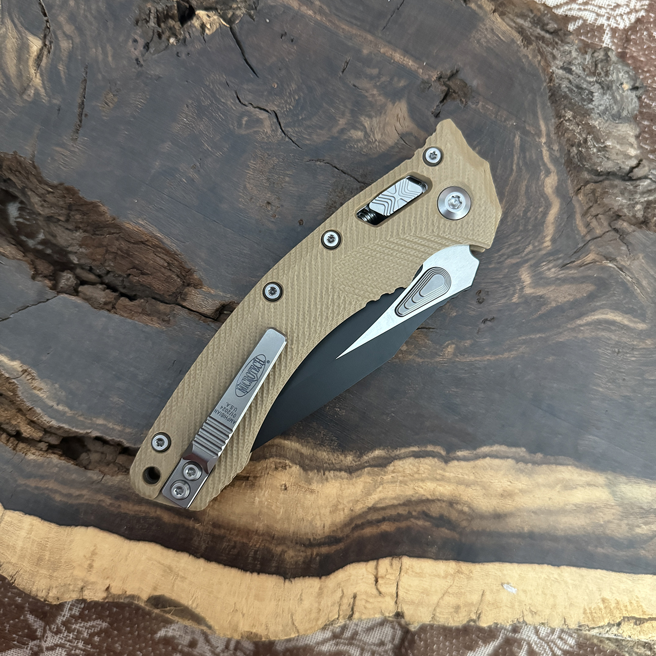 Microtech Amphibian RAM-LOK S/E Fluted Tan G-10 Black Standard Signature Series 137RL-1FLGTTA