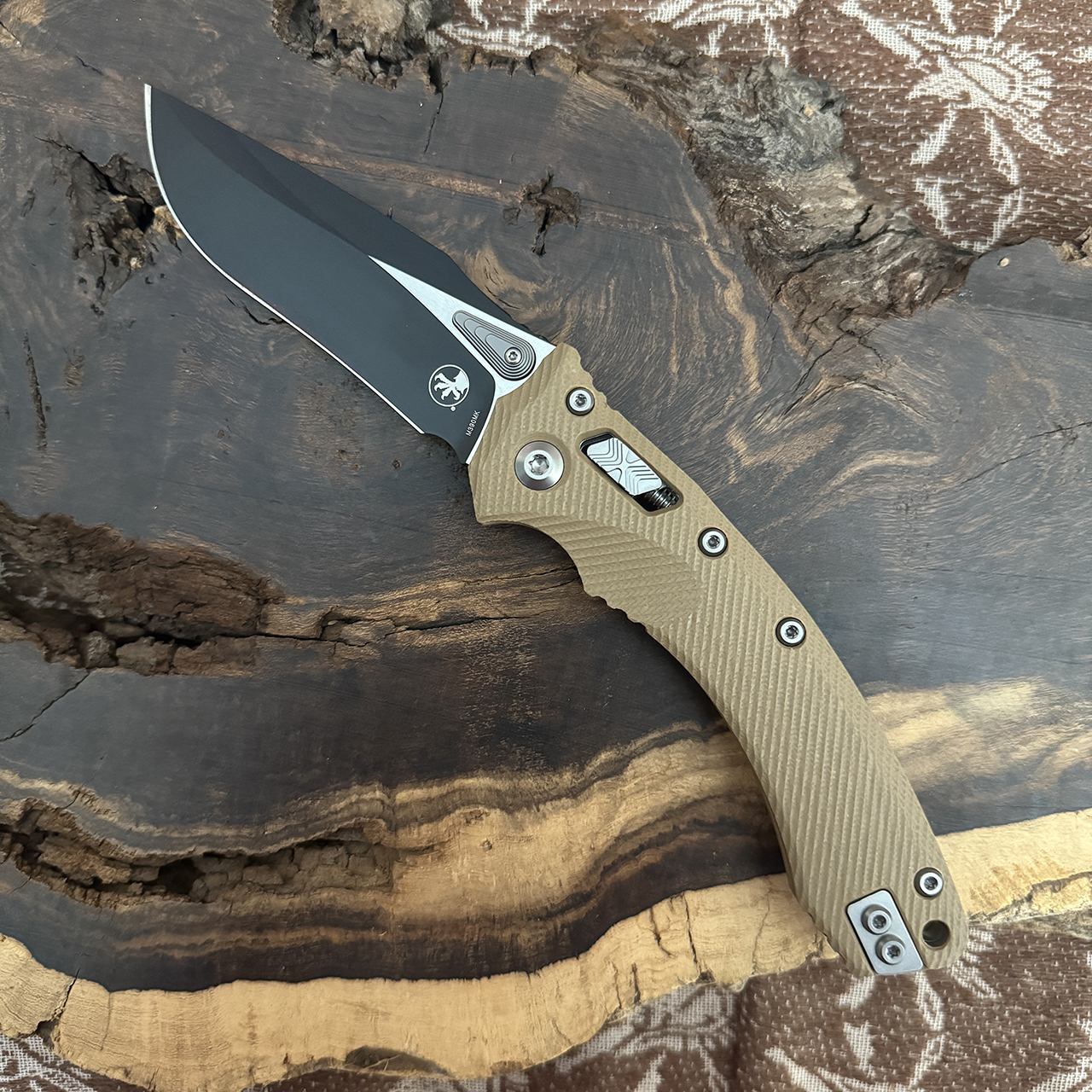 This Signature Seris model features fluted Tan G10 handle scales. Black finished M390MK stainless steel clip point blade. Pocket clip features the Signature Series logo, model information, and production date. Brand new in box.
