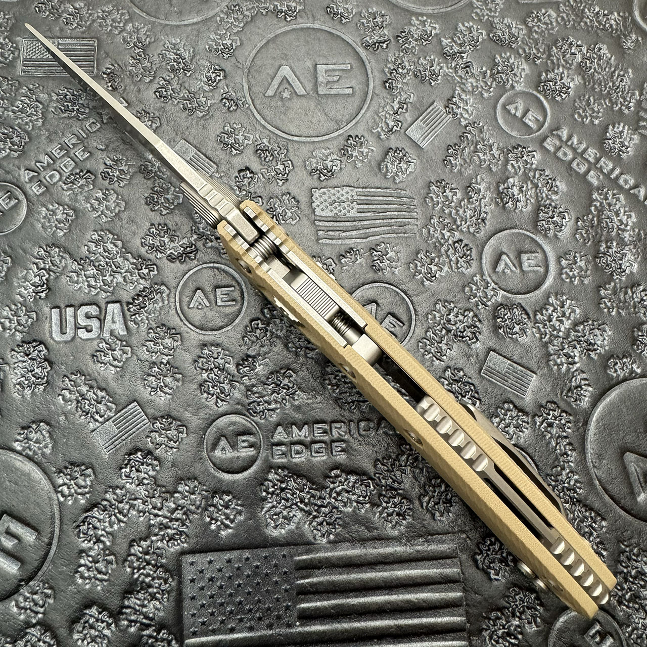 Microtech Amphibian RAM-LOK S/E Fluted Tan G-10 Stonewashed Standard 137RL-10FLGTTA