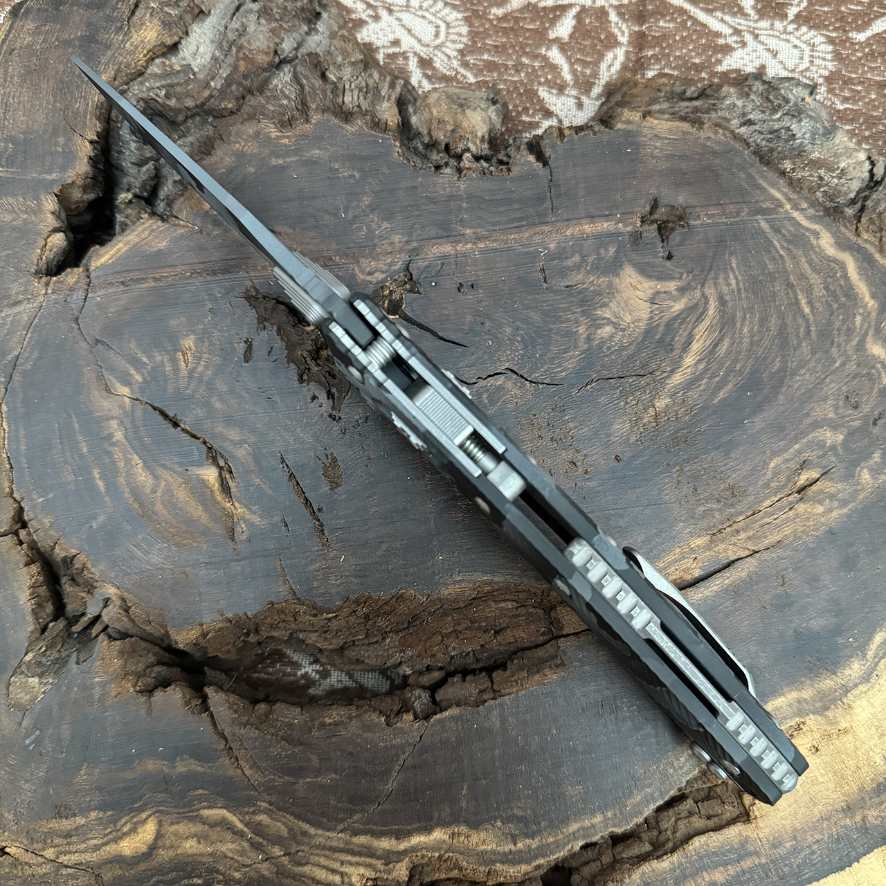 This Singature Seris model features fluted Urban Camo Cerakoted handle scales. Urabn Camo Cerakoted finished M390MK stainless steel clip point blade. Apocalyptic finished hardware. Pocket clip features the Signature Series logo, model information, and production date. Blade is sterile. Brand new in box.