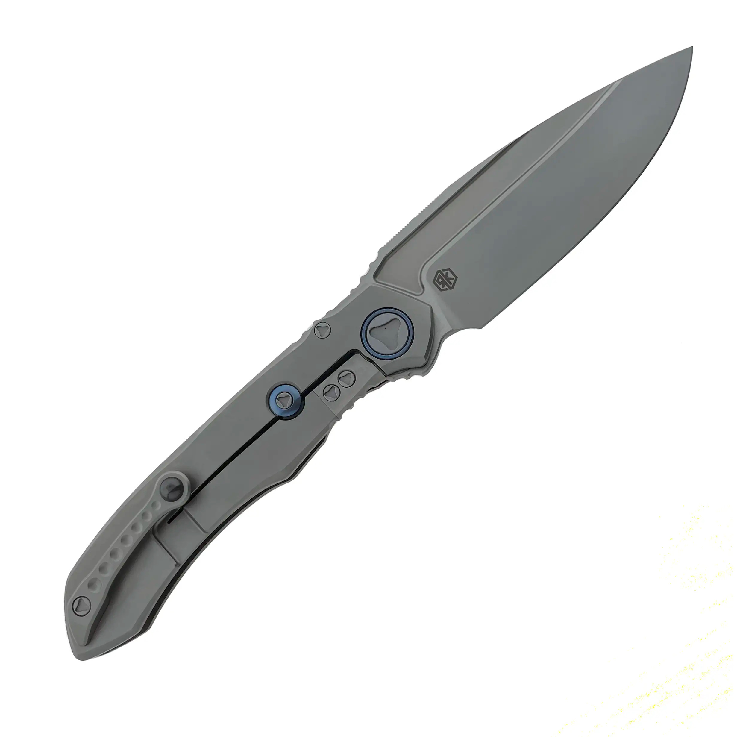 The Anax continues Tony's tradition of pushing the envelope. The blade features a big fuller groove for one handed opening. It rides on a ceramic bearing pivot system for smooth action that will last. The integral handle has fewer parts (no screws holding the handle together to worry about), which adds greater reliability. The blade is big with a nice deep belly for slicing and a thick point but it is packaged in a slim handle. This was Tony's first integral folder design. This particular version was completed in colloboration with Rike Knives.
