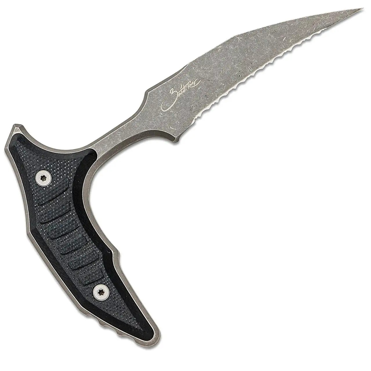 Microtech Bastinelli Bee Fixed Blade S/E Wharncliffe Black G10 Handle Apocalyptic Full Serrated Blade Signature Series 218-12APGTBKS