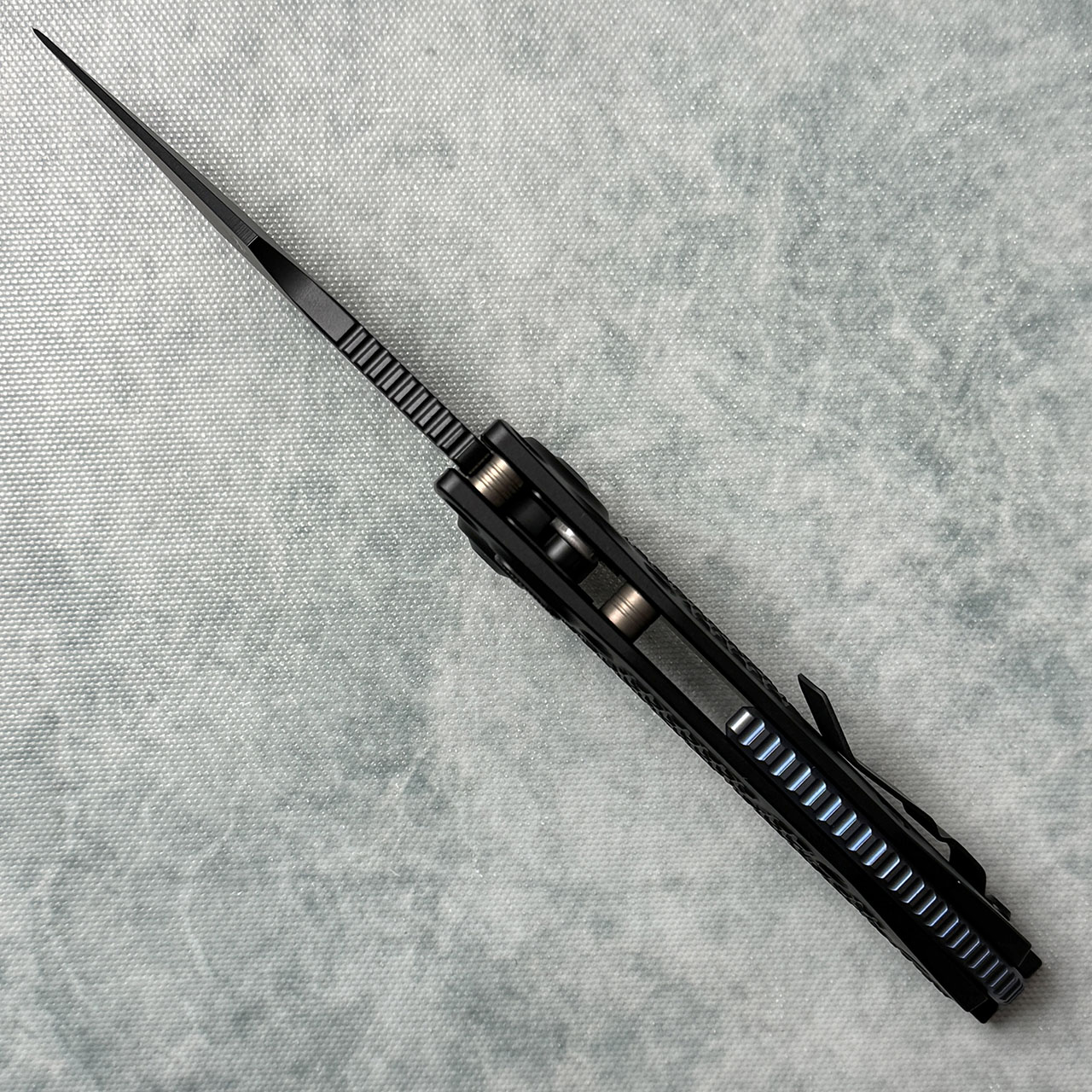 This wonderful piece of hardware harnesses the design genius of Anthony Marfione and Sebastian Berenji of Borka Blades. It has the stellar design of Sebastijan's Stitch and pairs it with Tony's top notch automatic mechanism to create one of the most badass production collaborations of the year.