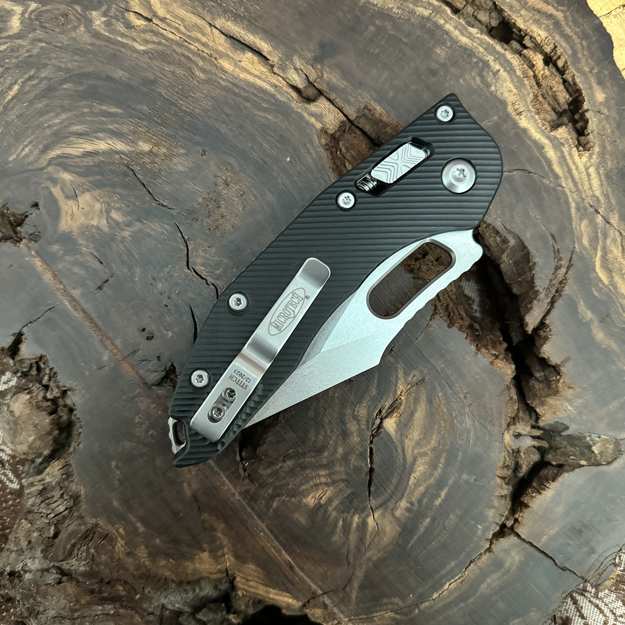 Microtech Borka Stitch RAM-LOK S/E Fluted Black Aluminum Stonewash Partial Serrated 169RL-11FL