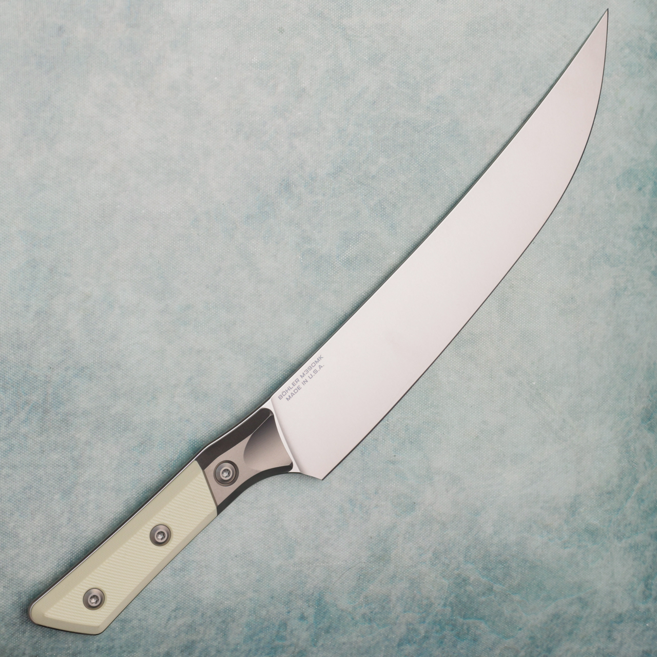 Microtech Butcher Knife Ivory G-10 Handle w/ Bead Blast Titanium Bolster Stonewash Standard Blade 3800B-10IV