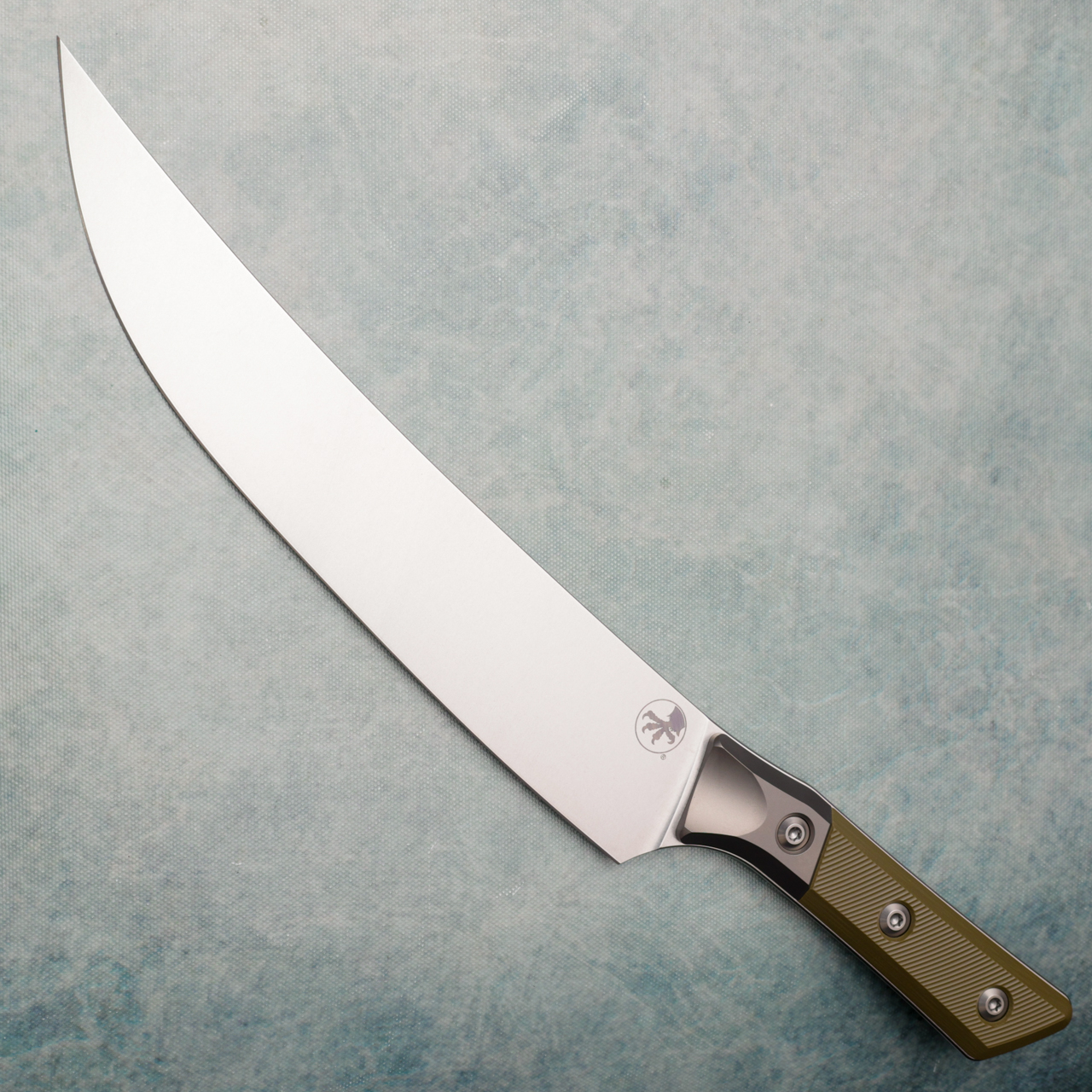 Microtech Butcher Knife OD Green G-10 Handle w/ Bead Blast Titanium Bolster Stonewash Standard Blade 3800B-10OD