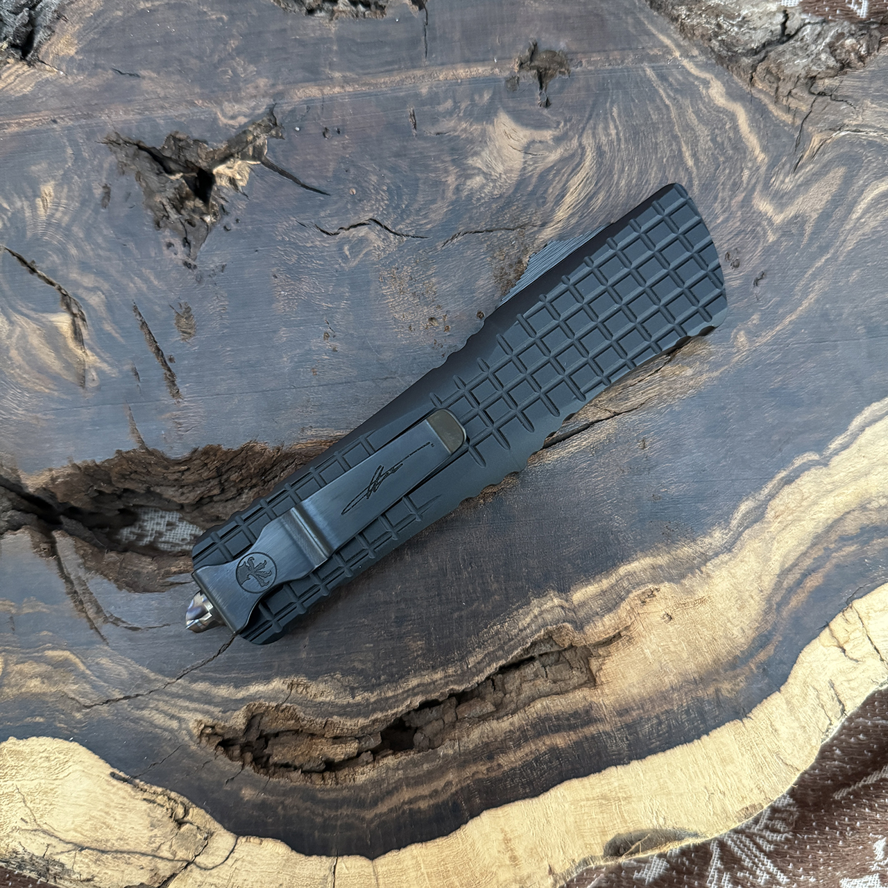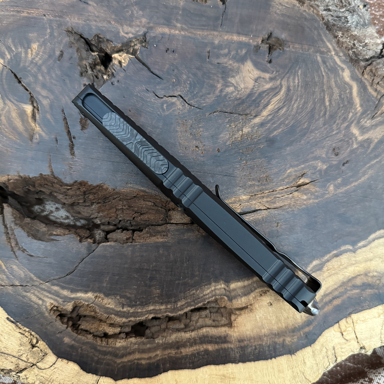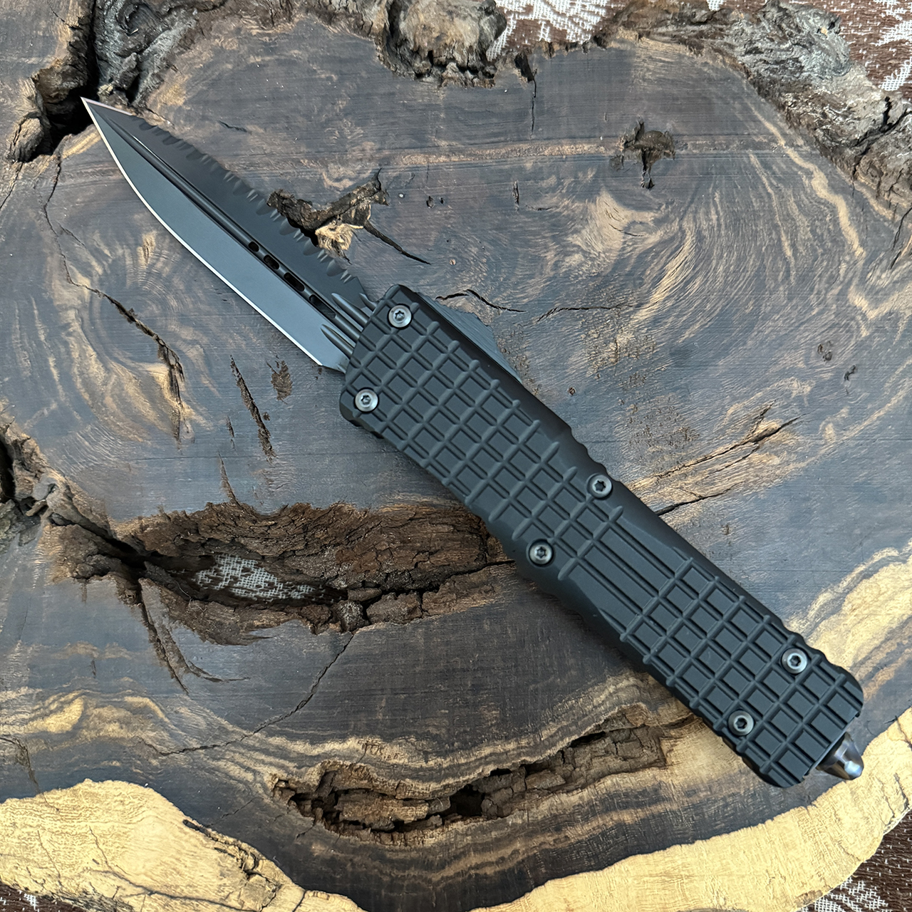 Microtech's largest OTF production knife is named after the Troodon dinosaur. The Combat Troodon is a really large version of the popular Troodon. Despite the size, the handle feels slim and comfortable. The action of course is Microtech excellent as you would expect. Big and bad!