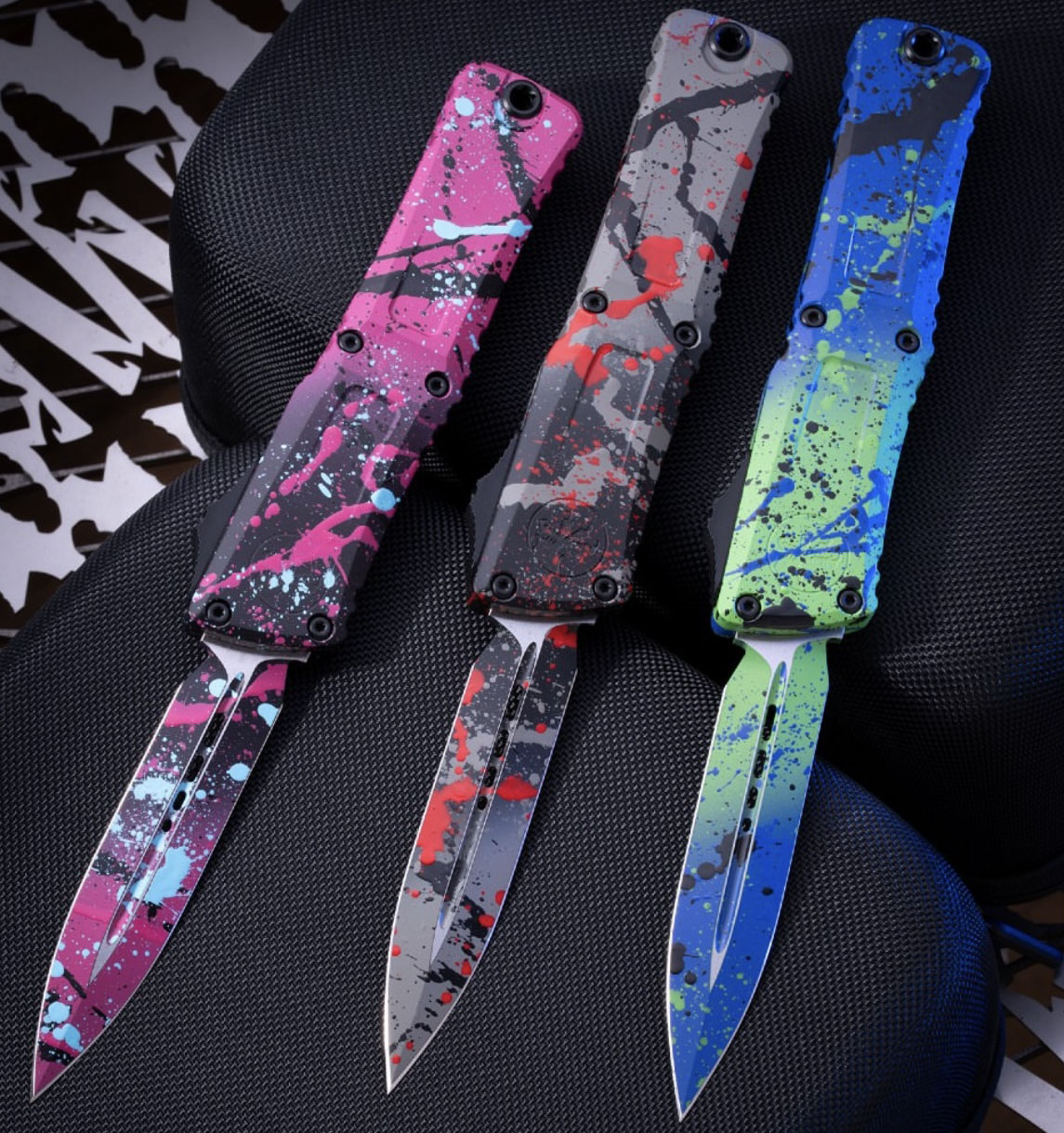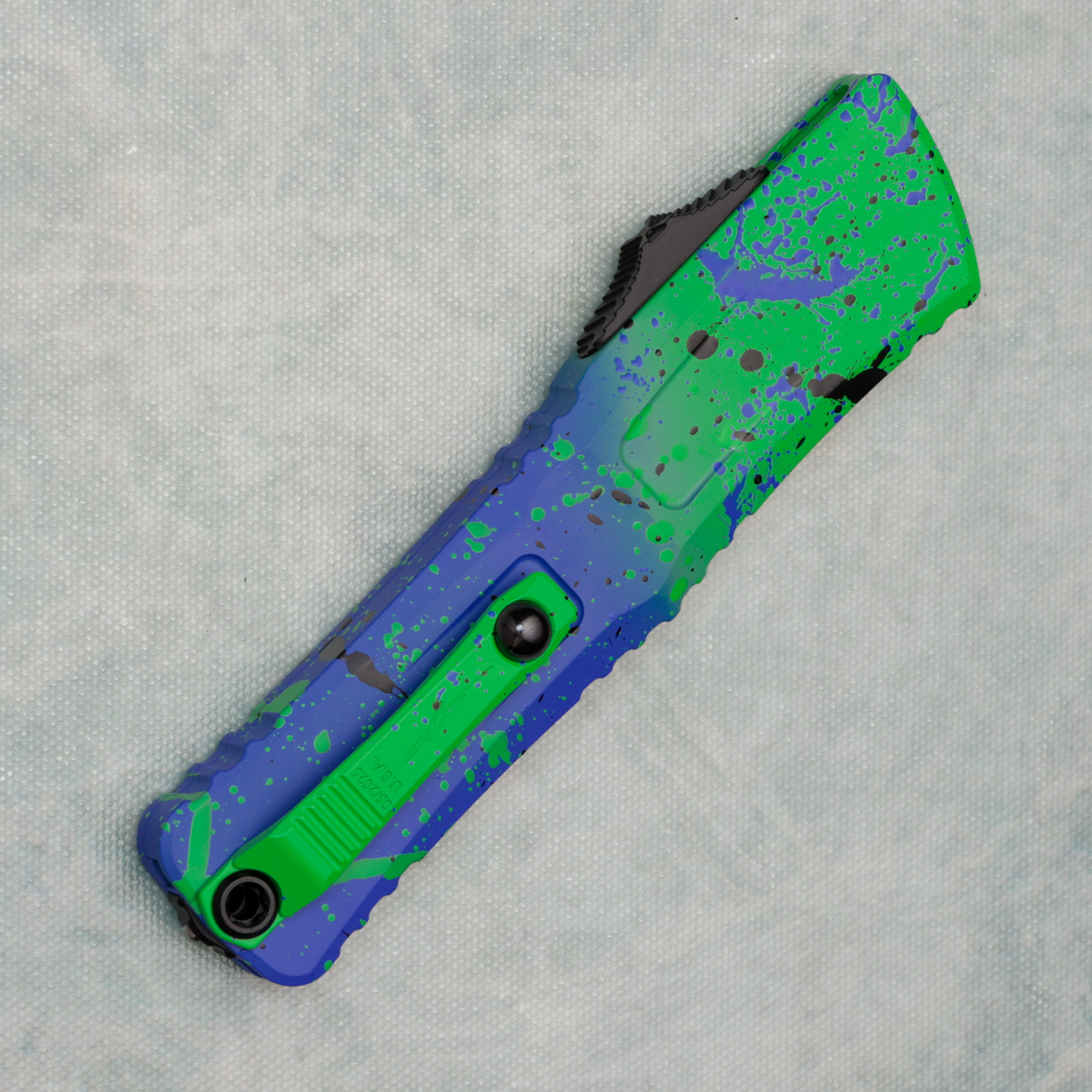 Microtech Combat Troodon D/E Gen III Green Mamba/PW Blue Light Blue Splatter Standard Signature Series 1142-1GMPWBKSPLS