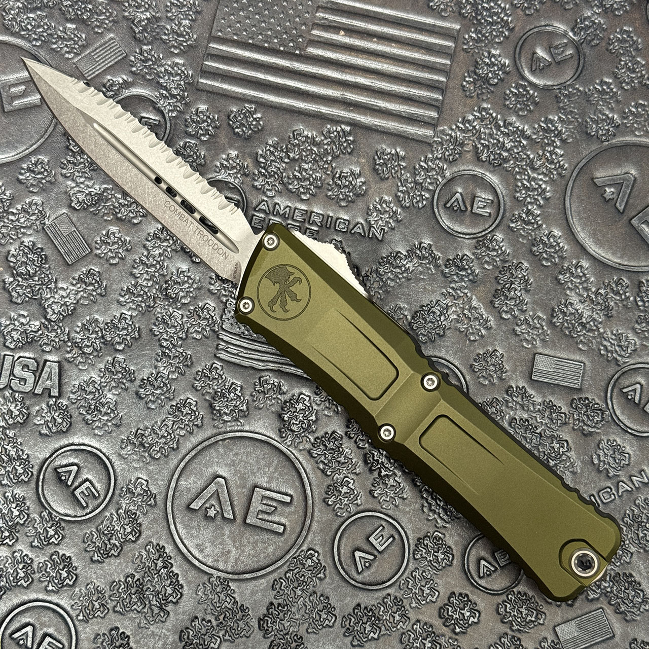 Microtech Combat Troodon D/E Gen III OD Green Stonewash Full Serrated 1142-12OD