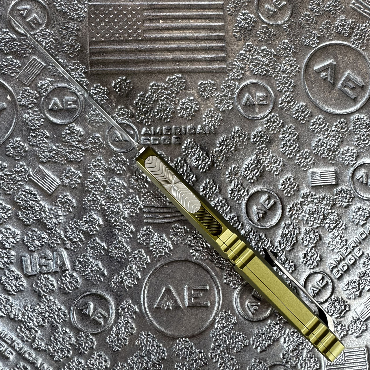 This model features a OD Green handle with Torx. Stonewash finished M390MK stainless steel double edge dagger blade with standard cutting edges. Reversible titanium roller ball pocket clip. Brand new in box.
