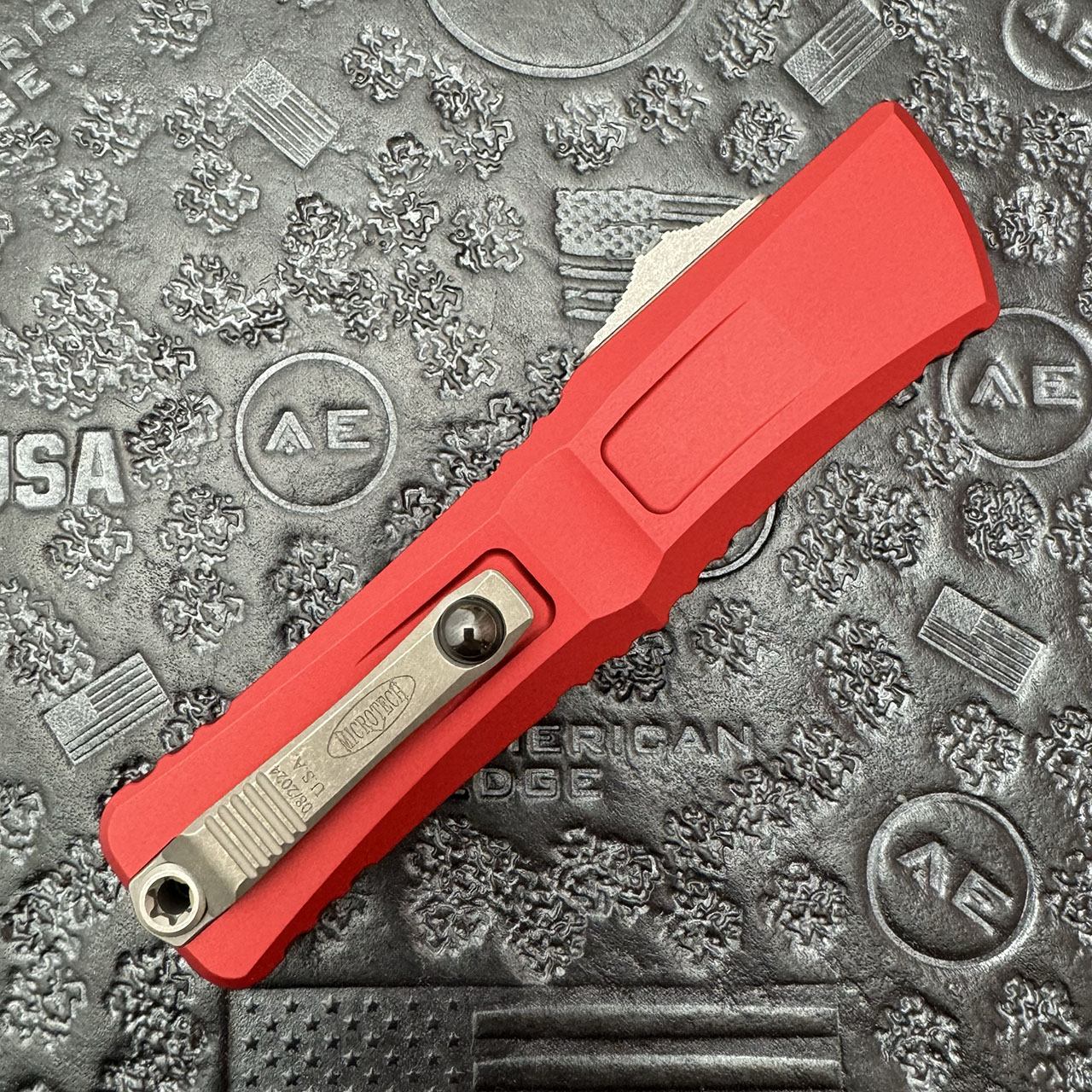 This model features a red handle with Torx. Apocalyptic finished M390MK stainless steel double edge dagger blade with standard cutting edges. Reversible titanium roller ball pocket clip. Brand new in box.