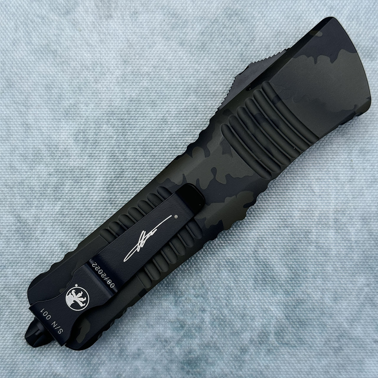 Microtech Combat Troodon D/E Olive Camo Cerakote Full Serrated Signature Series Serial Number 001 142-3OCS