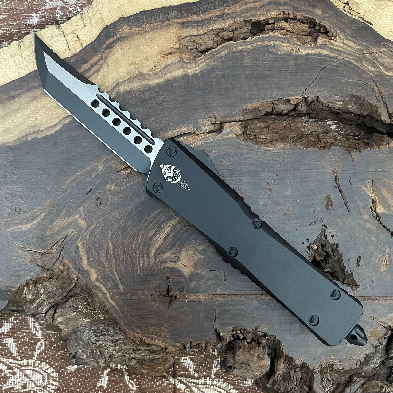 Microtech knives largest OTF production knife is named after the Troodon dinosaur. The Combat Troodon is the really large version of the popular Troodon. Despite the size the handle feels slim and comfortable. The action of course is Microtech excellent as you would expect. Big and bad!