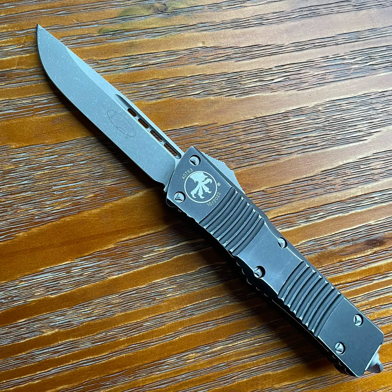 Microtech knives largest OTF production knife is named after the Troodon dinosaur. The Combat Troodon is the really large version of the popular Troodon. Despite the size the handle feels slim and comfortable. The action of course is Microtech excellent as you would expect. Big and bad!