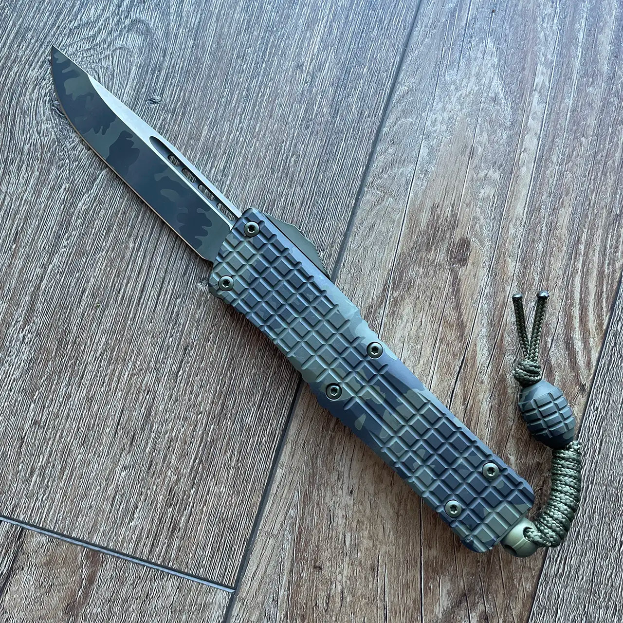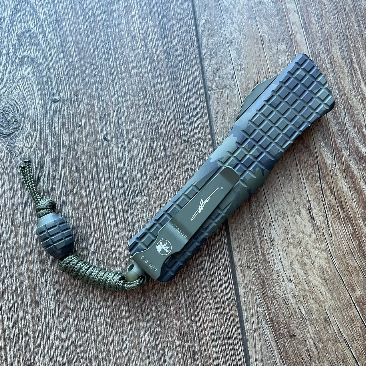 Microtech Combat Troodon S/E Frag Olive Camo Standard w/ Olive Camo Grenade Bead Lanyard Signature Series 143-1FROCGS