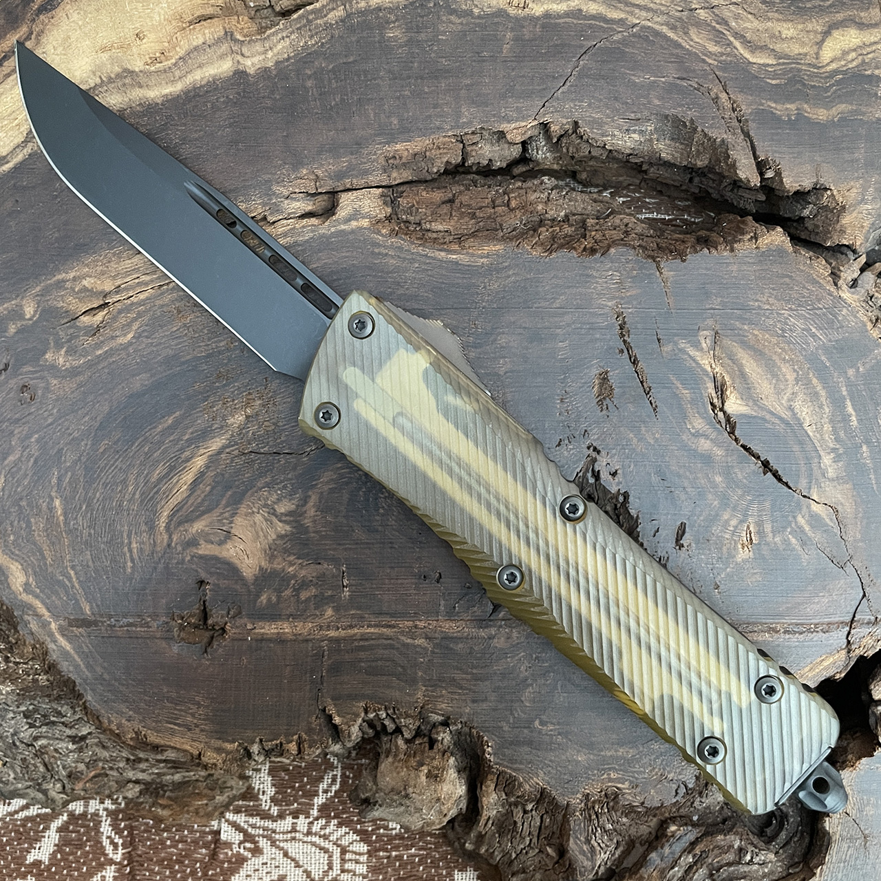 Microtech knives largest OTF production knife is named after the Troodon dinosaur. The Combat Troodon is the really large version of the popular Troodon. Despite the size the handle feels slim and comfortable. The action of course is Microtech excellent as you would expect. Big and bad!
